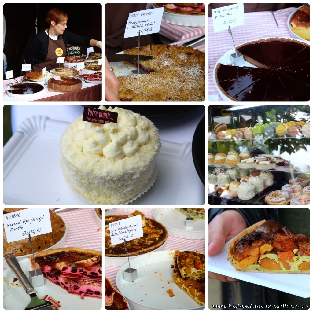 Mnohem menší fronta byla třeba u palačinek (Crepérie na cestách) nebo francouzského pekařství Votre Plaisir, kde měli celou škálu chutných slaných quiche (třeba s červenou řepou, s kozím sýrem, se špenátem a uzeným lososem, s dýní hokkaido atd.) nebo sladké dortíky (speciální čokoládový s Earl Grey čajem). K mému potěšení měli také bezlepkové makronky a kokosový dortík.