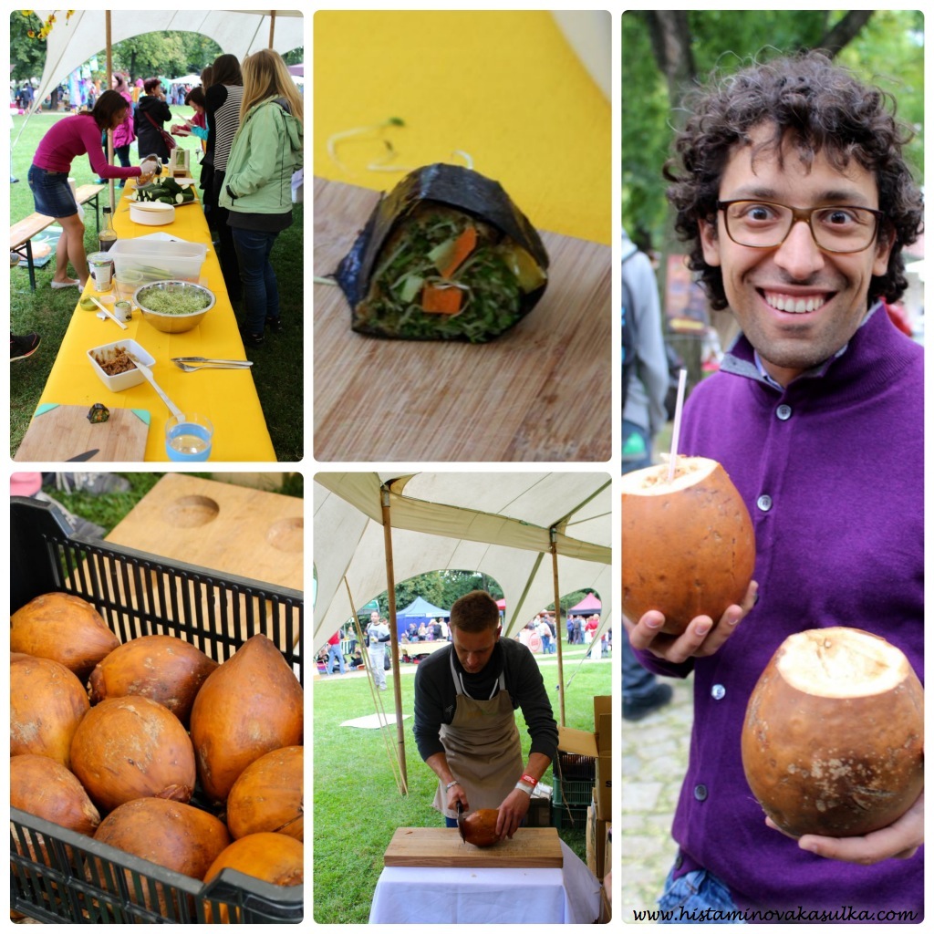 Program na hlavním pódiu trval až do osmé hodiny večer. Ve Fresh shapitó se podávaly nejen mladé kokosy, ale mohli jste si připravit své vlastní raw jídlo (tedy ozkoušet spiralizér nebo se naučit připravovat raw sushi) a později se účastnit také bubnování, ke kterému jste nepotřebovali ani bubínky. Stačili kokosové ořechy a různé druhy zeleniny:).