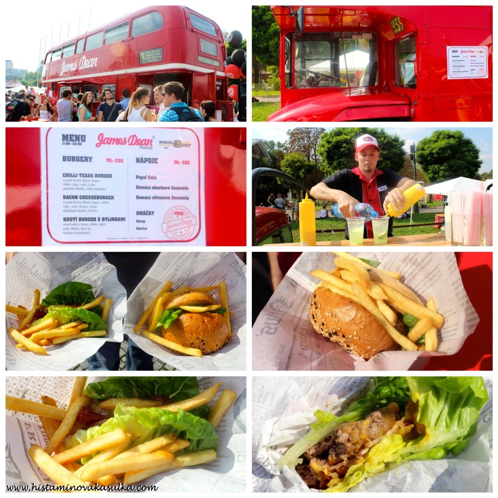 Začnu asi s tím, co jsme měli možnost ochutnat. Já sama jsem se dostala ke dvěma vzorkům, první z těchto byl v James Dean Prague, kde neměli problém připravit bezlepkový a zabalit podle instrukcí do salátu. Ke svým burgerům po americkém stylu přidali pár hranolek. Stanoviště nešlo přehlédnout, jelikož měli britský doubledecker a hostesky v růžových minišatičkách. Nicméně díky těmto hosteskám šly objednávky docela rychle. A místo pro vydávání limonády měli odděleně, což se velmi cení (např. u Hellman’s by si člověk musel vystát hodinovou frontu i když chtěl jen pití, nehovoříc o tom, že všechny burgery i bez bulky byly s lepkem, ale aspoň jsem na to byla upozorněna). Okurková limonáda u James Dean byla poprvé dobrá, na druhý pokus se moc nepovedla a byla přeslazená. Burgery byly dobré, shodlo se na tom veškeré osazenstvo (Black Angus hovězí). Sice to balení do salátu jim ještě nejde tolik jako v USA, alespoň se ale snažili vyhovět, což přidává body navíc. Za nás vítěz.