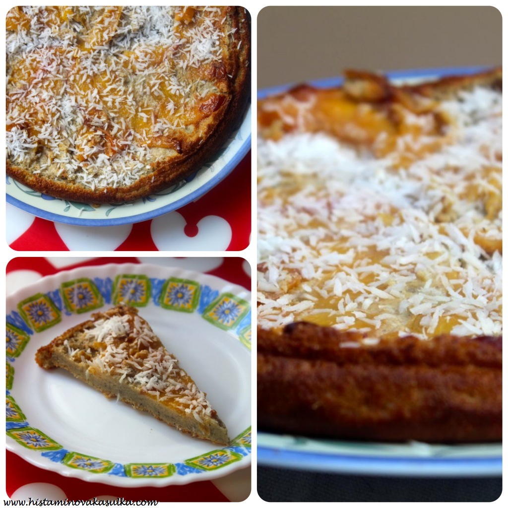 Tento koláč byl sám o sobě trochu vlhčí, nenaskočil tedy na překynutou buchtu, ale zato se dobře jedl a klouzal do krku i bez hektolitrů čaje. Dobře přenáší a nemusíte vysvětlovat, co to zase máte na snídani:)) Chuťově převládá kukuřice, která je s lehce opečenými nektarinkami v naprostém souladu. Tak až budete chtít obzvláštnit svou ranní kaši, směle do toho:))) Jé, bych málem zapomněla – čirok i nektarinky jsou samozřejmě protizánětlivé, stejně tak kokosový olej a strouhaný kokos:))