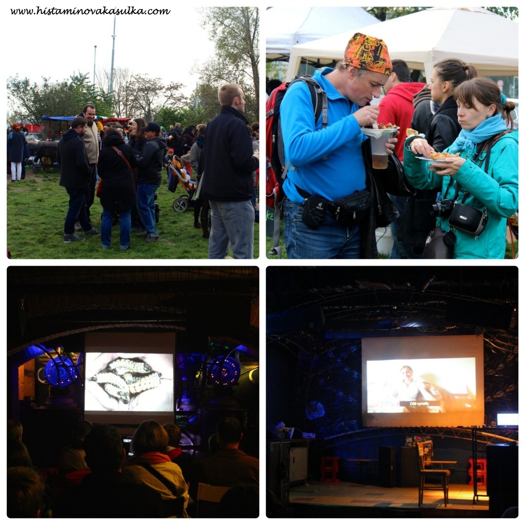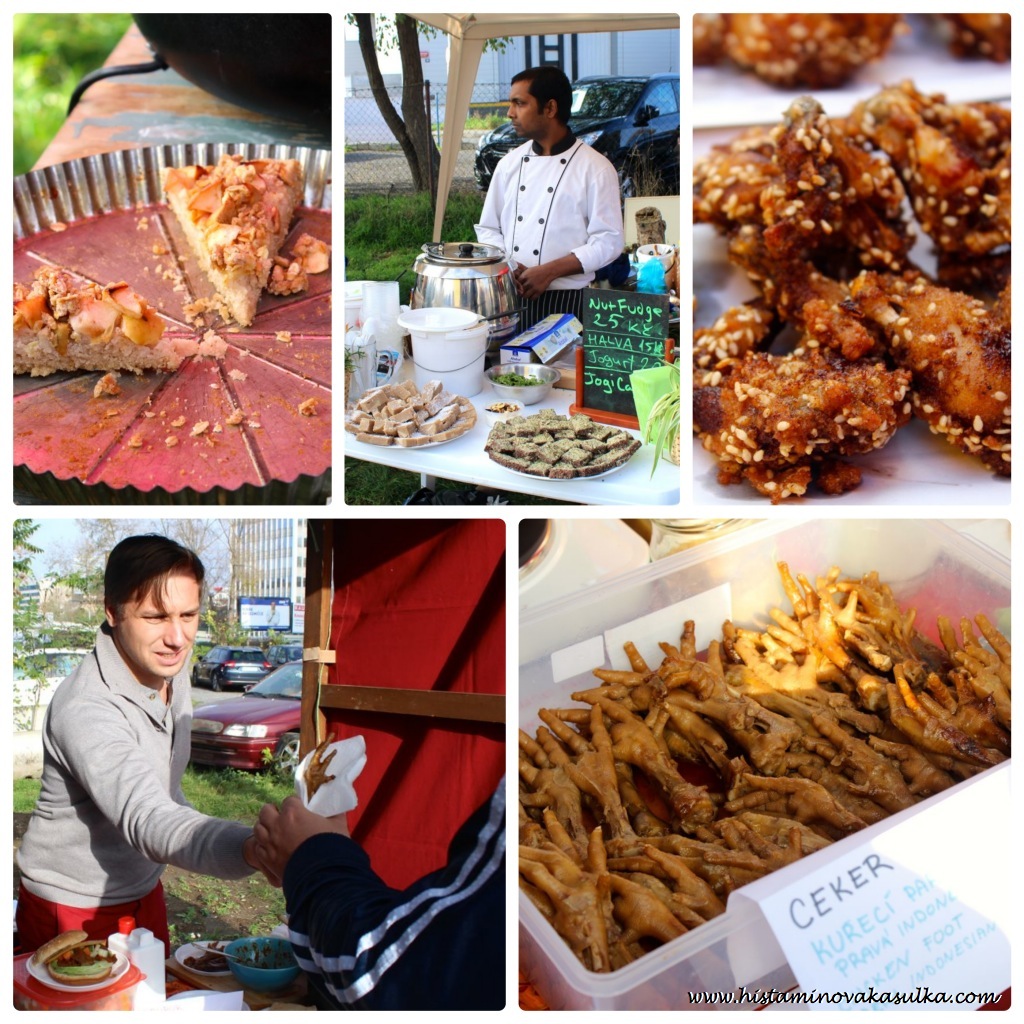 Na festivalu byly také výtvory od Kuchařky bez domova, kde jste si mohli dát sladký nebo slaný koláč za dobrovolný poplatek, a podpořit tak dobrou věc. Dále jste se mohli občerstvit v ajurvédské vege restauraci Sattvic, kde měli plněnou tortilu nebo polévku. Nechyběli ani paraguayské speciality (empanády, sopa), ryby na grilu, biošneci z plzně či Mr&Mrs Falafel. Jo a kdo si chtěl dát nějaký ten kuřecí pařátek, tak dostal také příležitost!!!