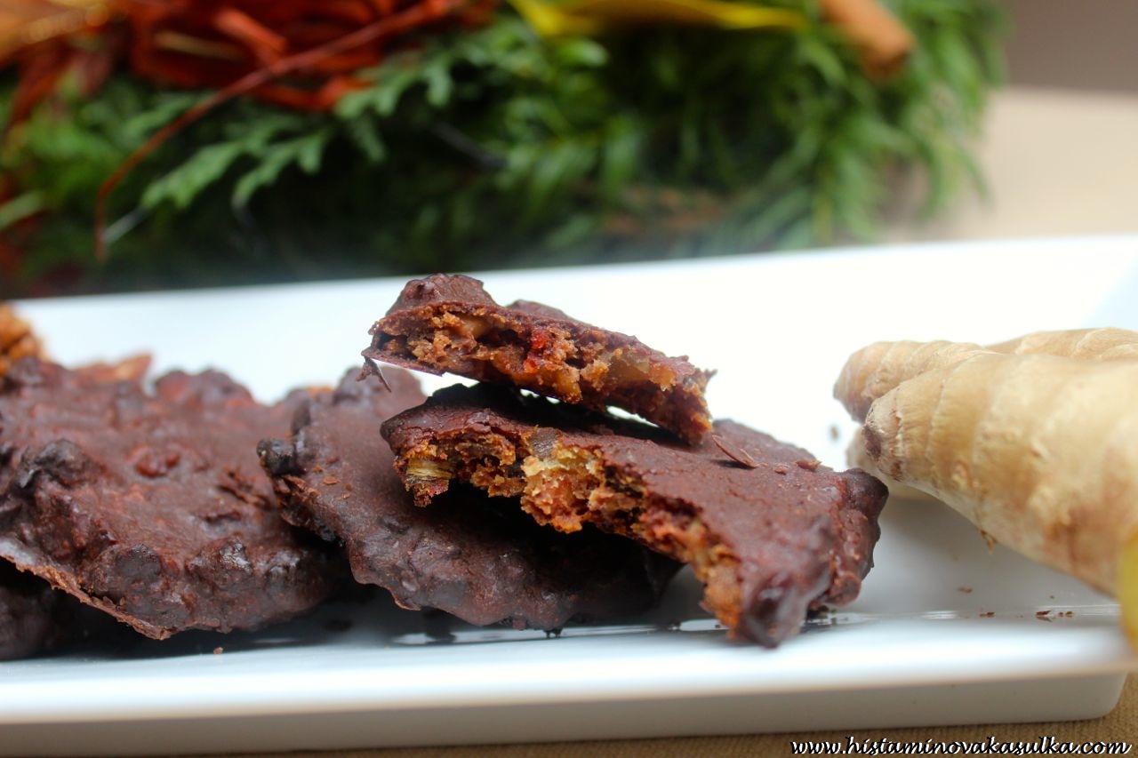 Nakonec jsem přidala trochu másla, ale pokud se vyhýbáte mléčnému úplně, stačí nahradit kokosovým olejem či kakaovým máslem. Jako základní mouku jsem vzala výbornou kaštanovou, která má nejen zajímavou chuť, ale také skvělé nutriční vlastnosti. Pak už jen podle vlastní chutě přidáte nakrájené sušené ovoce a ořechy. Já jsem zvolila tentokrát zázvor, protože jeho chuť je nejen specifická, ale je také přírodní antihistaminikum a protizánětlivý bojovník. Stejně tak meruňky i třešně vynikají svou protizánětlivou povahou. Datle jsou zase přírodním antihistaminikem a díky jejich přirozeně sladivému potenciálu už nemusíte přidávat žádný cukr navíc. K tomu trochu zdravého tuku a minerálů v podobě oříšků a můžete se radovat ze zdravějších Vánoc. Ale pozor, žádné přejídání!:)