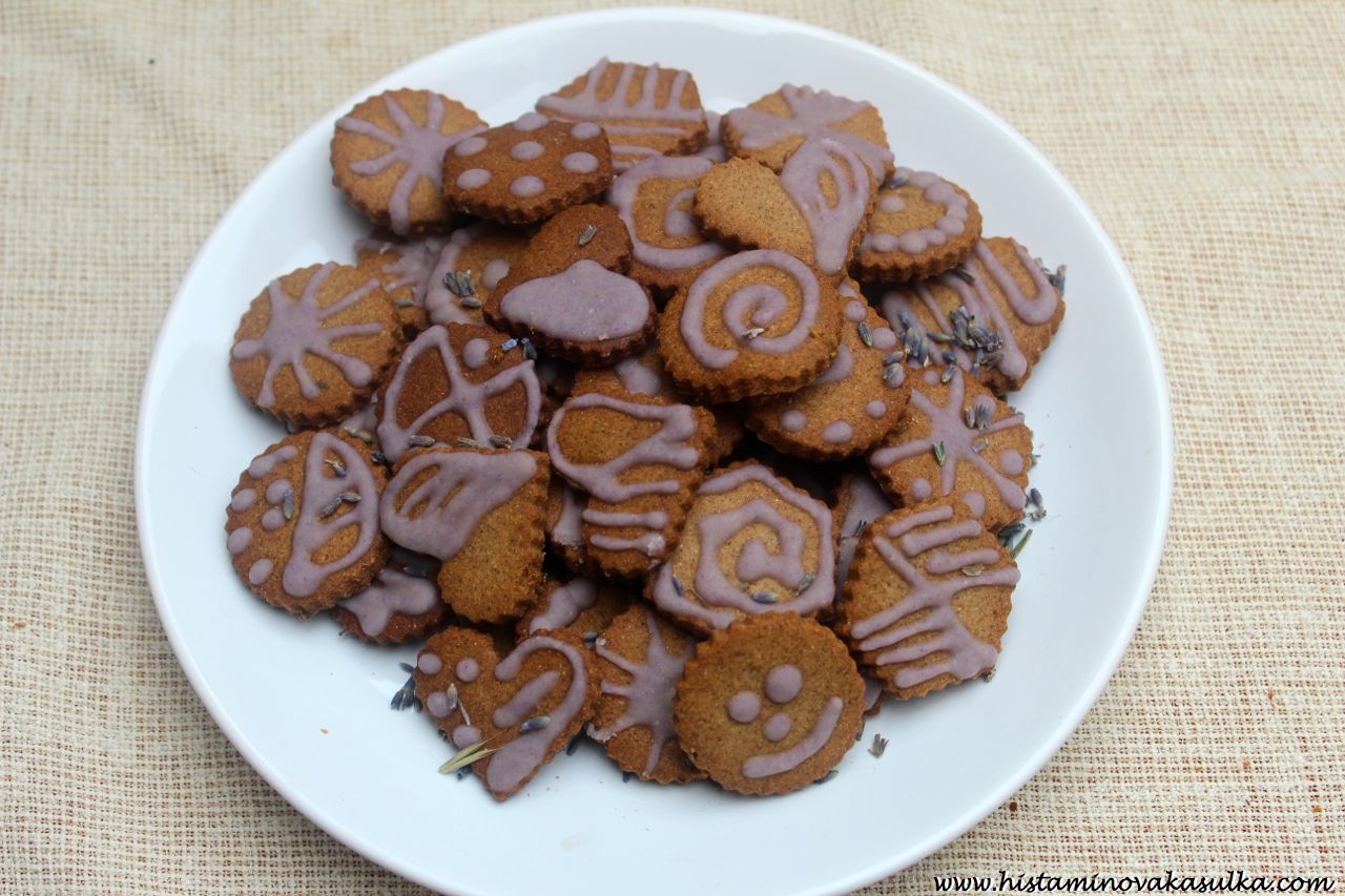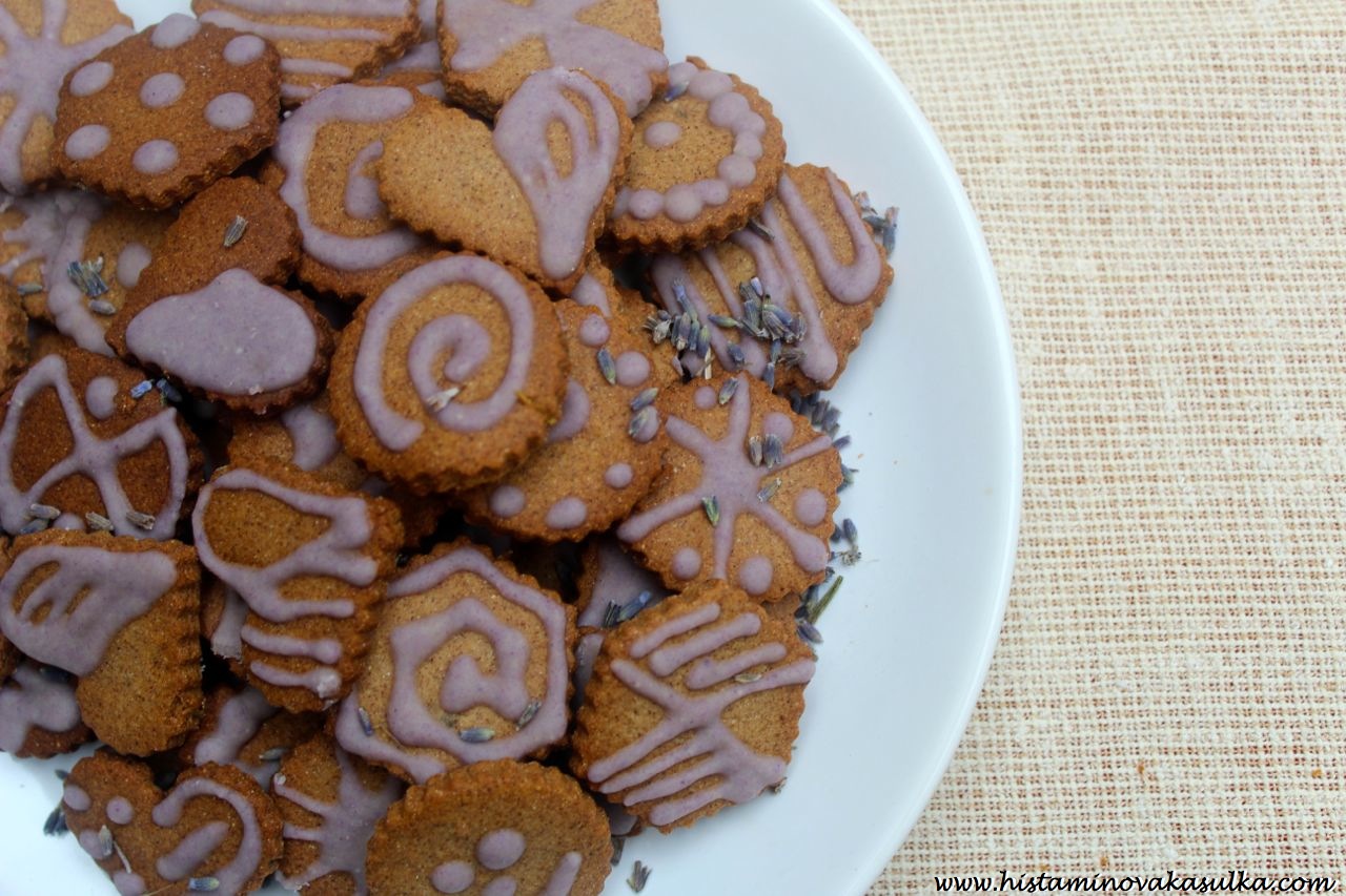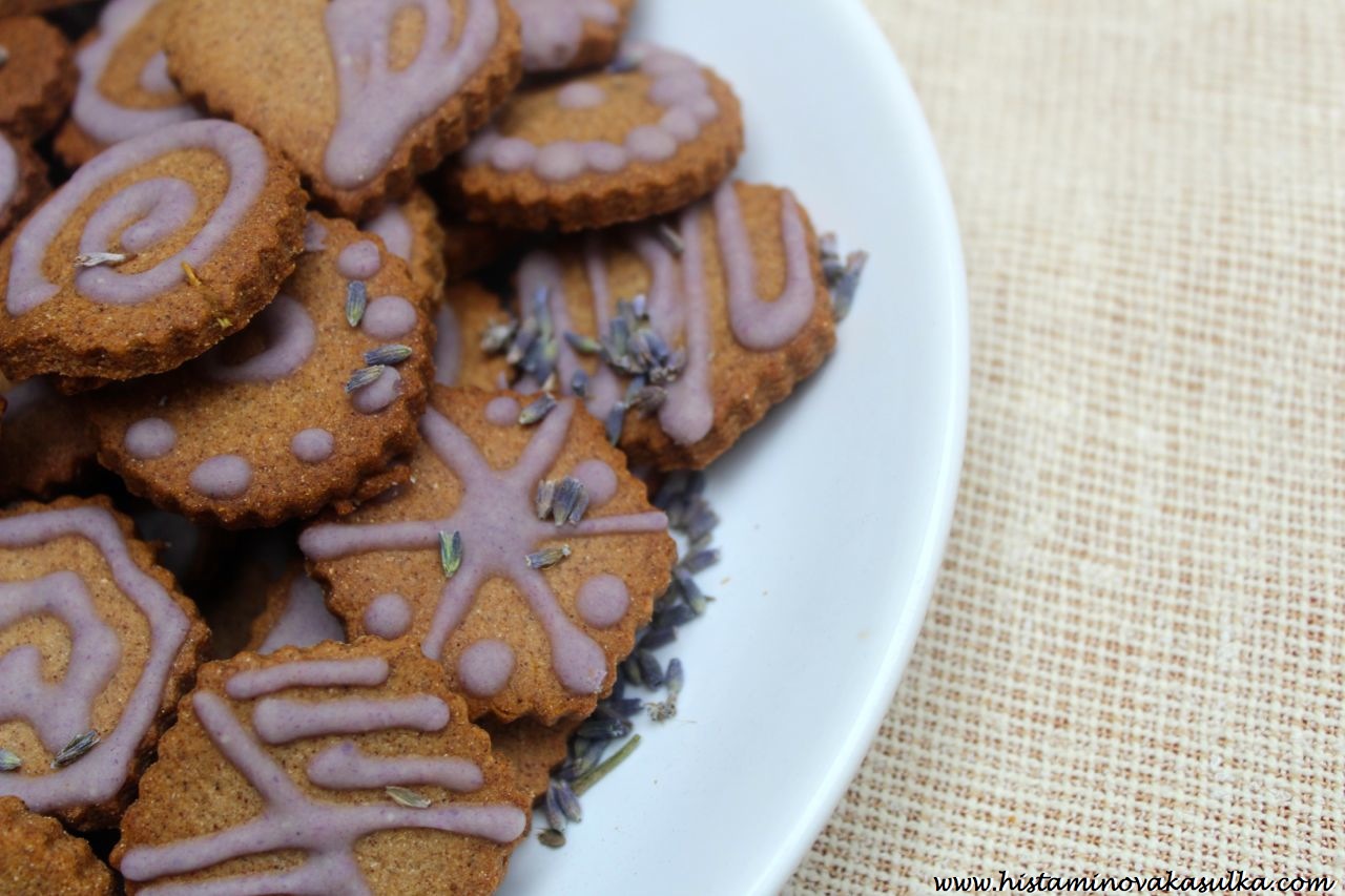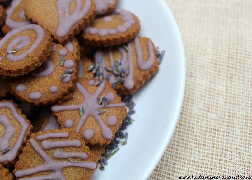 O účincích levandule jsem vám již psala. V těchto sušenkách se spojují s protizánětlivou čirokovou moukou, protizánětlivou amaranthovou moukou, výživnou kurakkanovou a protizánětlivým kokosovým olejem. V konečné fázi jsou tak nejen bez lepku, ale také bez vaječného bílku či bez mléčné bílkoviny. Při pečení krásně provoní byt a po snězení zase navodí příjemnou náladu. To aby ty Vánoce nebyly tak hektické. A pokud už nestíháte, dejte si pěkně louhovat levanduli na domácí levandulový extrakt, ať si tuhle dobrůtku můžete dát kdykoliv v tom dalším roce.