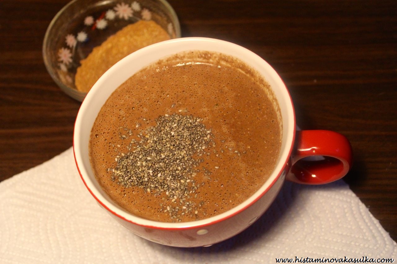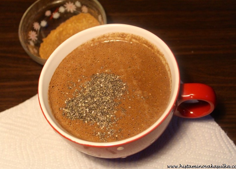 Nějakou dobu jsem přemýšlela, jak vykouzlit takové to hřejivé husté kakao bez toho, abych musela použít smetanu, horu tuku, zahušťovadla a kdoví co. A také aby tam té čokolády nebo kakaa nebylo zase moc, protože přestože je kakao protizánětlivé a antioxidační, obsahuje stále jiné biogenní aminy a může tak slabším povahám zamávat s DAO (pokud vás zajímá, proč jsem tedy raw kakao přidala, čtěte zde, a předem upozorňuji, že pražený karob je z pohledu HIT škodlivý jako kakaový prášek, pokud tedy tolerujete karob, může být problém jinde než v histaminu).