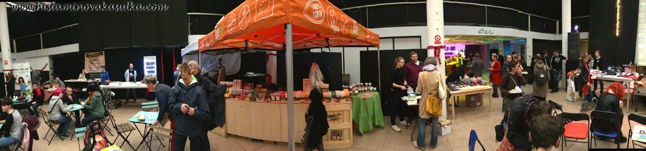 Pokud si myslíte, že tyto akce bývají čistě fanatické, určitě byste byli překvapeni. Nebudu se nijak přetvařovat, nejsem vegan a momentálně si ani svou dietu bez vajec jako zdroje vitamínu B12 nedovedu představit. To se samozřejmě nevylučuje s tím, že veganské recepty nemám ráda a že si velmi ráda neodlehčím jídlem bez živočišných proteinů. Kdo sleduje mé stránky pravidelně, jistě ví, že jsem fanda protizánětlivé a vysokonutriční stravy s inspirací od Dr. Fuhrmana, který doporučuje, aby max. 10% denního příjmu kalorií pocházelo z živočišného zdroje z mnoha důvodů (něco málo zde). Samozřejme nemůžu opomenout i fakt, že maso (i mléčné) je velmi diskutabilní v histaminové intoleranci, jelikož musí být naprosto čerstvé, jinak je problém s kontaminací (celkově v něm najdeme vysoký obsah histidinu, ze kterého se v těle tvoří histamin). Ale teď už zpátky k festivalu:))