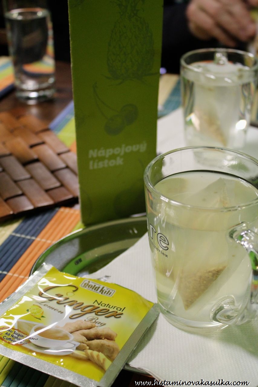 Samozřejmě zvlášť si můžete vybrat také smoothie a různé čerstvé šťávy, my jsme v chladném počasí zvolili zázvorový čaj. K mému překvapení se nejednalo o čaj z čerstvého zázvoru, ale o sušený zázvor s citrónem v pytlíku, který v konečné fázi nebyl tak silný, jak se na pravý zázvorový čaj sluší. Každopádně jsem se zase něco přiučila a zjistila, co vše se dá sehnat (určitě lepší sušený zázvor než různé směsi kdoví čeho, ale zase ten pytlík…).