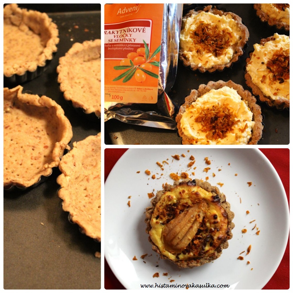 Dnes bych vám ráda představila takové podzimno-zimní košíčky, kde jsem spojila nejen protizánětlivé mouky, ale také chuť pečené hrušky, medu a rakytníkových vloček. Rakytník jistě všichni znáte, jelikož se stal poslední dobou velmi populární. Je krásné, jak se opět vracíme k lidovému léčitelství, které jsme před několika desítkami let zahodili jen proto, že jsme slepě věřili moderní medicíně. Věřím, že pokrok, výzkum a nová léčiva mají smysl, ale na druhou stranu vidím, kam jsme to s tím moderním životem (i medicínou a přístupem k „léčbě“ lidí) dopracovali. Nikdy bych nevěřila, že se nejdále dostanu tím, že zahodím nabalující se kvanta chemie, a vrátím se k základům – výživě. Proto bych chtěla apelovat i na vás, abyste zůstali otevření a všímali si, jak na nás může mít příroda (nejen jídlo) vliv. Nevěřte slepě ani přátelům, vědcům či lékařům. Věřte sami sobě.