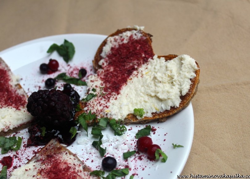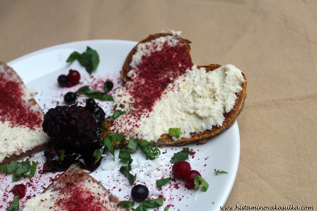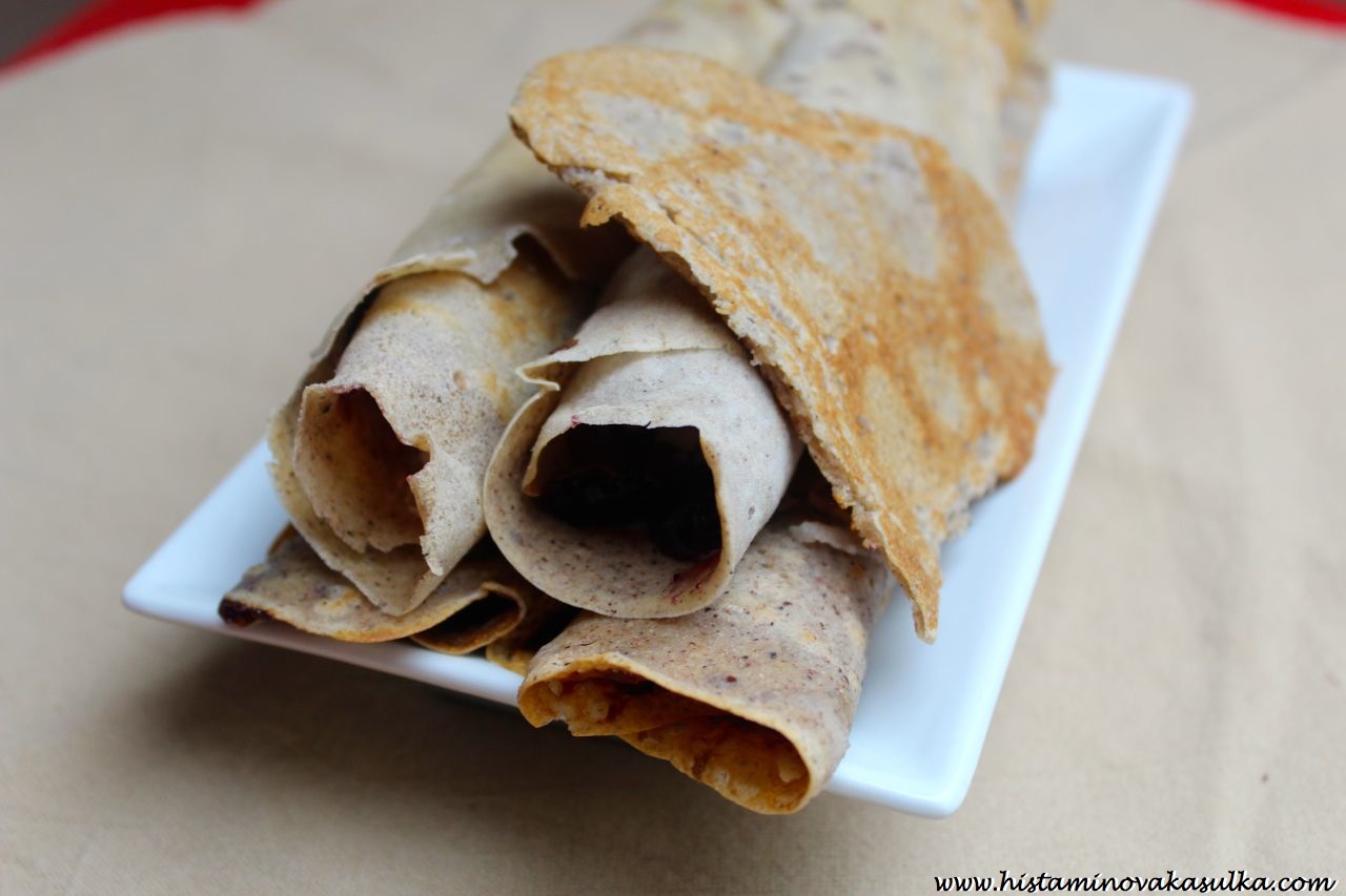 Tak už žádné vykecávání, určitě už se těšíte na vaření. Když si budete chtít pohrát, můžete palačinky osmahnout do tvaru srdce nebo prostě srdce vyřezat až po usmažení. A kdo by si nechtěl takhle hrát, dostane krásně tenké prosmažené palačinky (než dosmažíte, odkládejte palačinky mezi dva talíře, kde krásně parou změknou. Ju a opakování je fajn, tak si připomeňme, že citrusová kůra neobsahuje histamin, ale působí jako antihistaminikum, čirok i pohanka působí proti zánětu a kokos i brusinky jsou taktéž protizánětlivé.