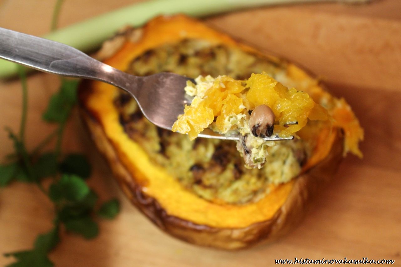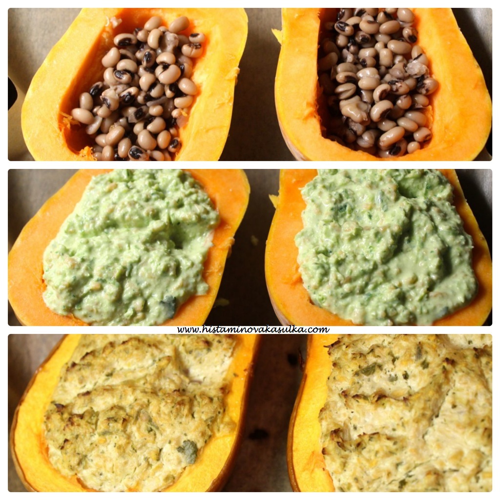 A musím říct, že věřím, že na mé cestě mi pomáhají i protizánětlivé potraviny, které často mají i nějaké ty další schopnosti, jako je boj s histaminem, rakovinou či třeba bakteriemi. A pokud se cítíte extra ohroženi pšikajícím okolí, je dobré zapracovat co nejvíce takových potravin do jídelníčku. Můžete vyzkoušet třeba protirakovinnou a protibakteriální dýni, naplnit ji protizánětlivými a protihistaminními fazolemi černé oko, přidat protizánětlivý pór (chrání trávící trakt) a protizánětlivý a antimikrobiální koriandr (k dýni a fazolím a histaminu si můžete přečíst jednotlivé odkazy). Kdo toleruje mléčné, může vyzkoušet trochu čerstvého kozího sýru, kdo nemá rád chuť kozího sýru, může zkusit ricottu, kdo může vejce, přidá třeba jen vejce. A kdyby ani to neprošlo, zkuste zalít rozmixovanými kešu oříšky se špetkou kurkumy, budete mile překvapeni:)).