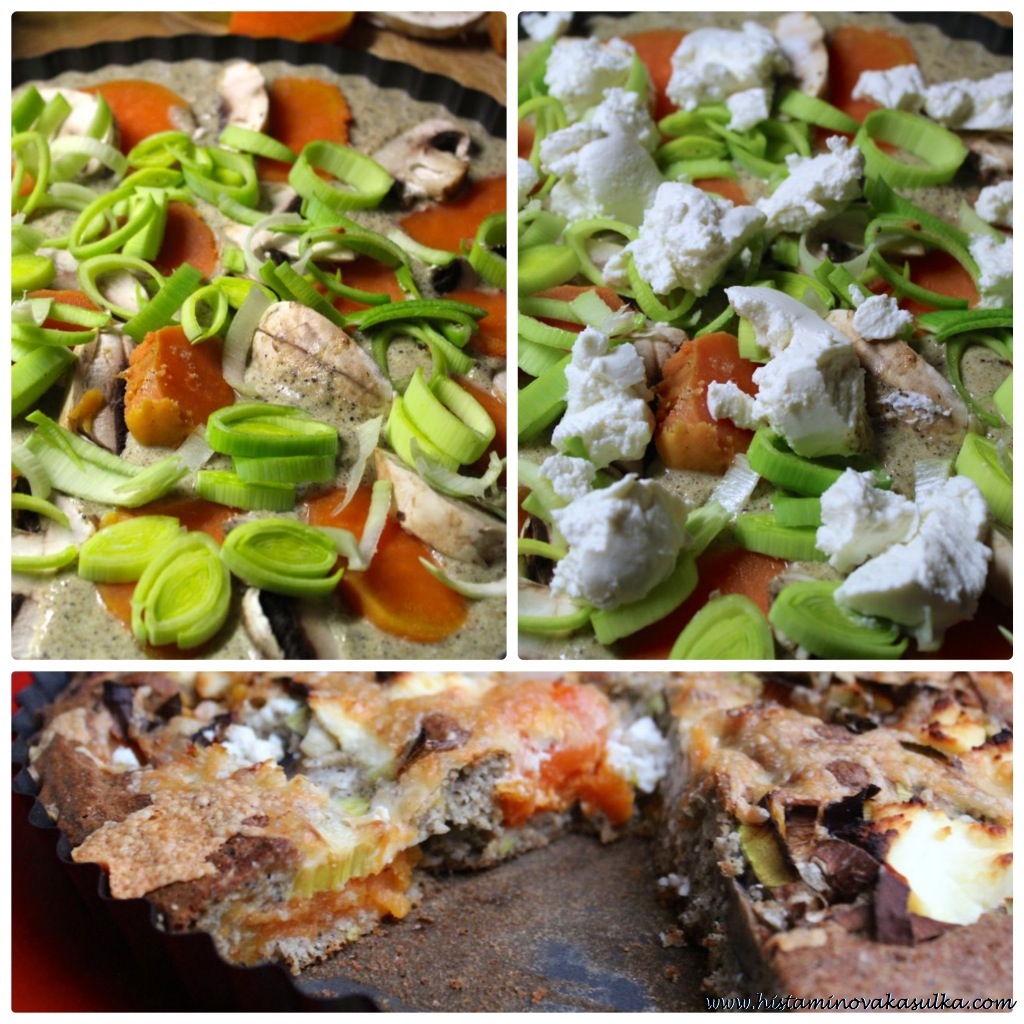 Slaný bezlepkový koláč s batáty a žampiony