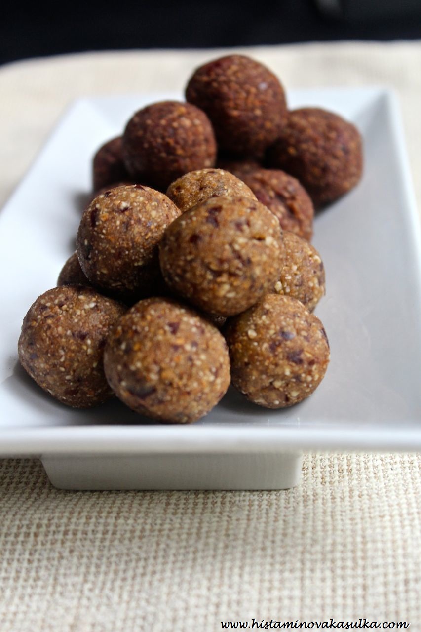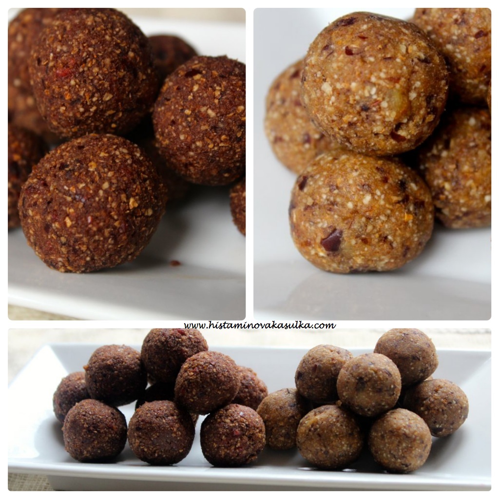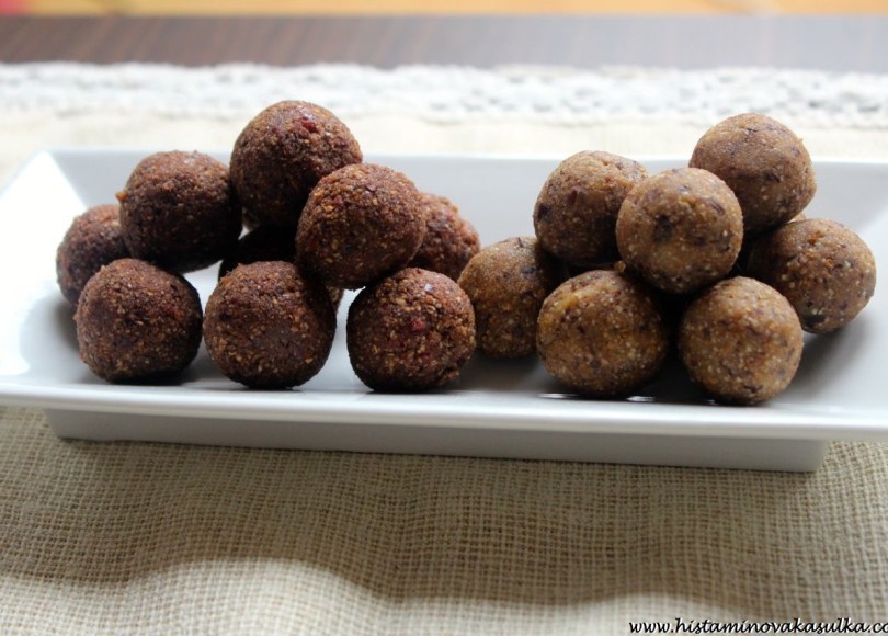 V druhé variantě si zase dopřejeme protizánětlivé třešně a kakao (řiďte se vlastní tolerancí potravin, přestože kakao ani skořice neobsahují histamin, mohou u některých pacientů vést k uvolňování vlastního histamu či samozřejmě můžete mít alergie, kakao volte nepražené, jelikož pražením se zvyšuje obsah jiných aminů). A samozřejmě sušené ovoce je ideální domácí nebo z ověřené produkce, kde nejsou využívány konzervanty. No a dneska už se nebudu vykecávat, protože všechno důležité už víte, tak se můžete vrhnout na mlsání:))).