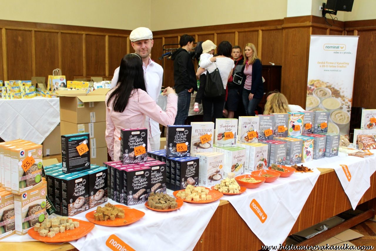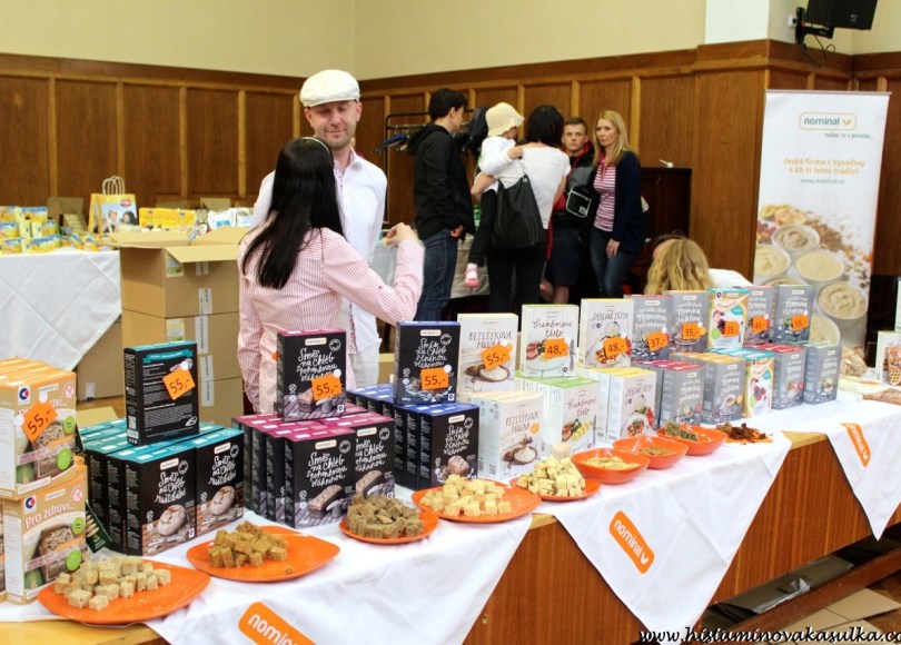 V samotném předváděcím sále pak byly ostřílené značky jako Doves Farm, Bio Schnitzer (k mému zklamání žádné jáhlové pivo!), Adveni (spíše směsi na chléb a pár jednodruhových, doporučuji navštívit raději jejich stránky pro plný sortiment), Emco (zde jste mohli konečně koupit i bezlepkovou granolu, která není běžně k dostání), Racio (doporučuji podívat se na Karotka krekry, pokud tolerujete rýži, bohužel jejich nové krekry s koprem mají kvasničný extrakt), Nominal (velká část s deproteinovaným pšeničným škrobem, takže nic pro mě, i když ty jejich obaly jsou kouzelné), Poex se svou ochutnávkou pufovaných výrobků (nezkoušela jsem, ale prý mají dobré ty zelené kuličky „do polévky“) a pár dalších. Teda řekla bych, že v době, kdy jsme dorazili, tak už jsme na některé vystavovatele ani nenarazili, prostě to po největším nátřesku odpoledne zabalili (takže žádná ochutnávka piva a tak:)).