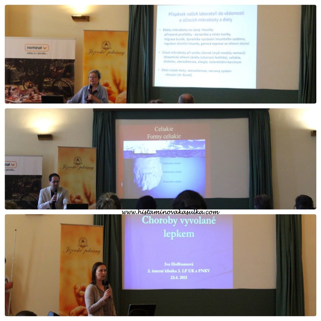 Co bych však vyzdvihla na první místo, byly přednášky. Vážně mě mrzí, že sál byl tak prázdný, protože tam měli sedět všichni lidé (a ideálně lékaři) a pozorně poslouchat. Nemůžu uvěřit, že tito lidé přednášejí i lékařům a stejně se stále setkáváme s absolutní arogancí, ignorancí a přehlížením dat a pacienta. Profesorka Tlaskalová-Hogenová lidem tak trochu představila střevní mikrobiom a jak je opravdu strašně důležitý v našem zdraví. Stále více zjišťujeme, že narušení tohoto citlivého prostředí nejen stravou může být spouštěčem všech nemocí, které jsou na vzestupu (včetně střevních nemocí, autoimunitních chorob, obezity atd.). Pan doktor El-Lababidi skvěle představil postup diagnostiky celiakie a samozřejmě vše obohatil svými zkušenostmi především u dětských pacientů. Asi bych si ním v některých bodech nesouhlasila (loni už několik studií vyvrátilo teorii o imuno okénku a zavádění lepku ve 4.-6. měsíci), ale celkově bylo vidět, že se v dané oblasti aktivně vzdělává a hlavně se snaží kombinovat laboratorní data a vlastní praxi. A co mě zahřálo u srdce, byla přednáška paní doktorky Hoffmanové o chorobách vyvolaných lepkem. Poprvé jsem se setkala s lékařem, který nejen ví, co to je NCGS, ale také o tom přednáší a šíří informace dál. Jen netuším, proč to tedy lékaři neaplikují do další praxe. Paní doktorka celkově i v diskuzi odpovídala naprosto skvěle a bylo vidět, že se tématem aktivně zabývá. Vzhledem k tomu, že jsem ten den ráno zrovna publikovala článek o neceliakální gluten senzitivitě, bylo to jako opakovat si učivo:)). Teda výhrady bych měla obecně k diskuzi na stranu obecenstva, ale možná je to tím, že jsem zvyklá na jinou úroveň a že tito lidé se často nemají kde jinde zeptat. Oba poslední zmínění lékaři byli velmi trpěliví v odpovídání dotazů a pokud budete mít možnost se k nim dostat, tak vřele doporučuji.
