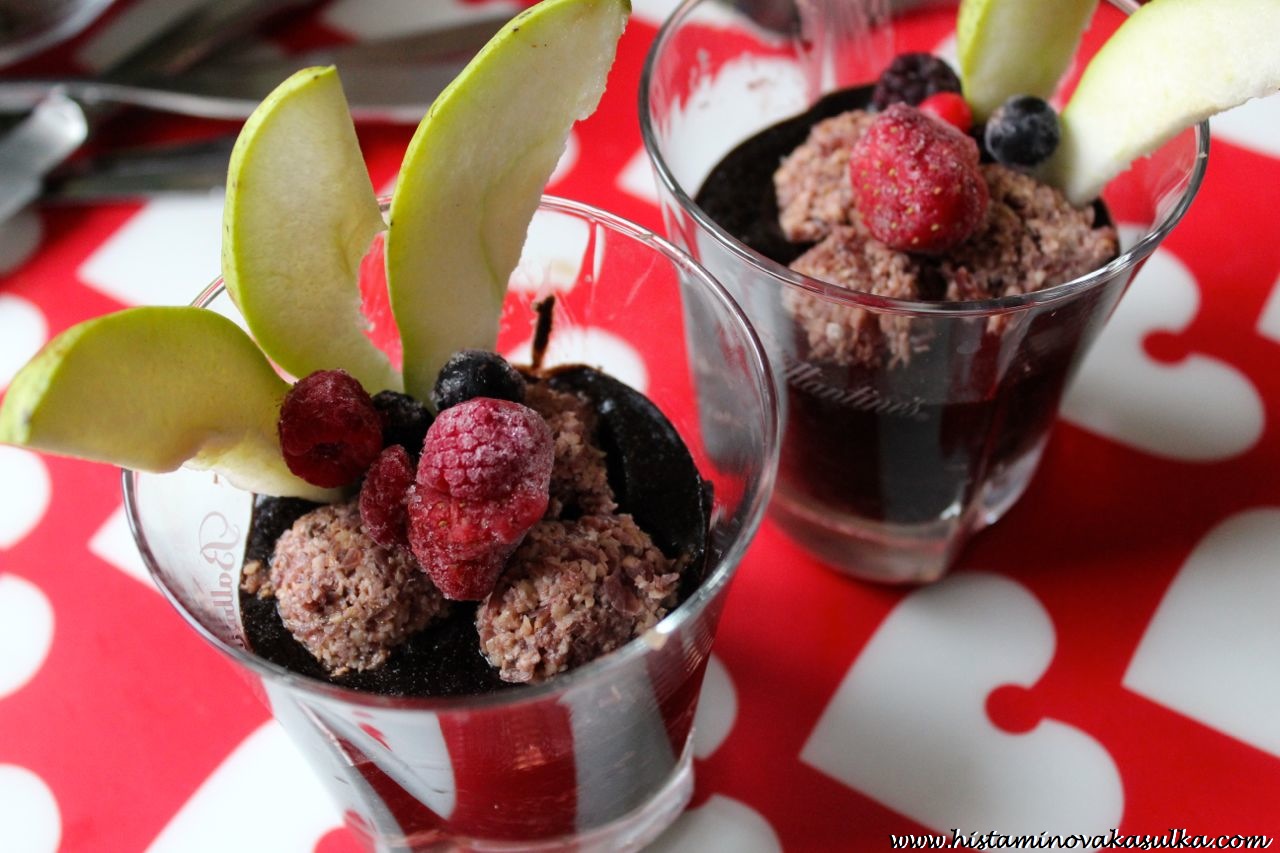 Ibiškový dezert s karobovým krémem