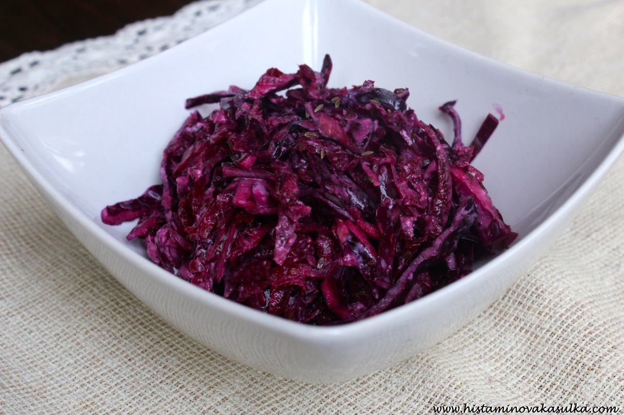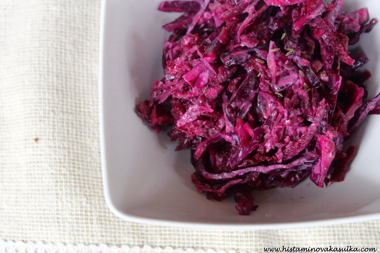 Asi je vám jasné, že červená barva zelí bude znamenat, že jsou tam nějaké látky navíc. A kdo tak sleduje můj blog, už mu určitě došlo, že to budou nejen antioxidanty, ale také se popisuje, že bojují proti zánětu i alergiím. Když se k tomu přidá protizánětlivá a protirakovinná červená řepa a pořádná dávka kmínu, dostanete rychlý zeleninový salát, který budete zbožňovat. Nic proti zelené, ale občas je potřeba ty barvy trochu promíchat:)).