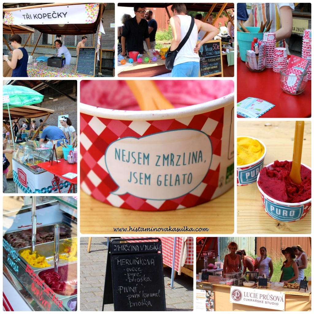 A samozřejmě, v takovém vedru by to chtělo nějakou zmrzlinku. Tu zajišťovali Tři kopečky (které bohužel měli vyprodaný vegan sorbet, než jsme se stihli vrátit), Puro Gelato (mají obchod na Náplavce, pokud neznáte, doporučuji, jejich lesní plody s rukolou jsou nepřekonatelné), Nice Pops či Cukrářské studio Lucie Průšová se svou meruňkovou zmrzlinou z dusíku.