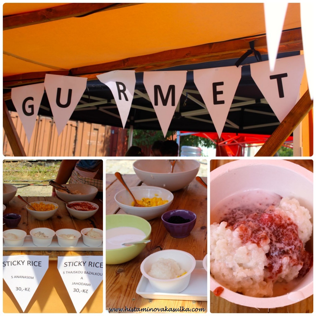 My jsme se stavili ve stánku časopisu Gurmet, kde jsme dostali skvělou lepivou rýži na sladko v kokosovém mléce, já jsem zvolila s jahodami a thajskou bazalkou. Jako naprostý luxus. A ještě jsme se dozvěděli, že narozdíl od některých jiných food časopisů nevyužívají fotobanky, ale recepty si vaří a fotí sami, takže je vše ozkoušeno před samotným publikováním. Každopádně pokud jste sticky rice v kokosovém mléce ještě nezkoušeli, tak je načase.