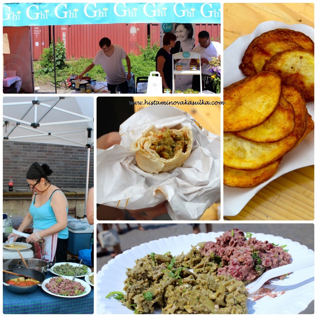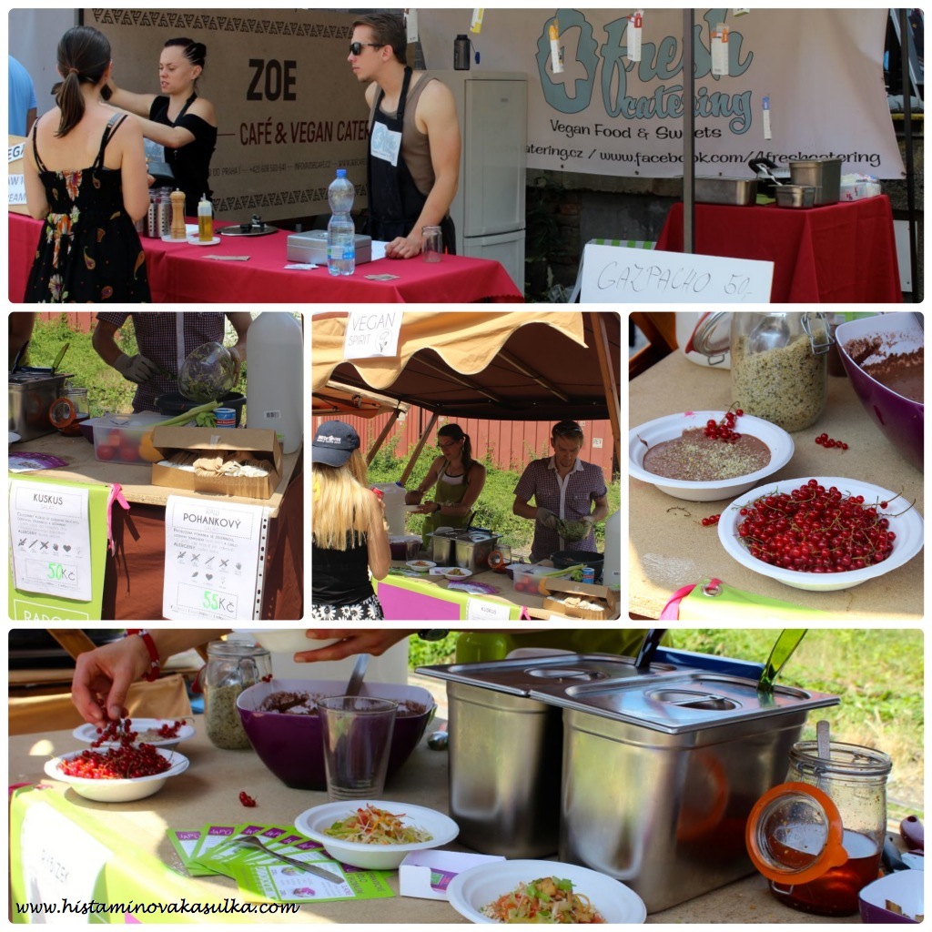 Mezi mnoha stánky s hot dogy, hamburgery a sendviči se našlo pár, kde jste mohli zvolit bezmasou variantu. ZOE jsem vám již párkrát představovala a určitě doporučuji zaskočit na nějaký raw zákusek. Ve Vegan spirit si připravili kuskus, pohankový salát nebo kaši, která bohužel byla s normálním ovsem a tedy mohla být s lepkem. V Divoká tráva jste pak mohli ochutnat třeba mrkvové kuličky.
