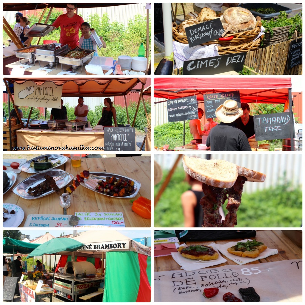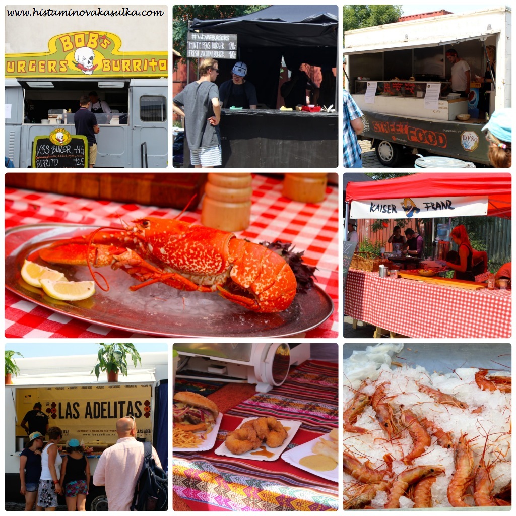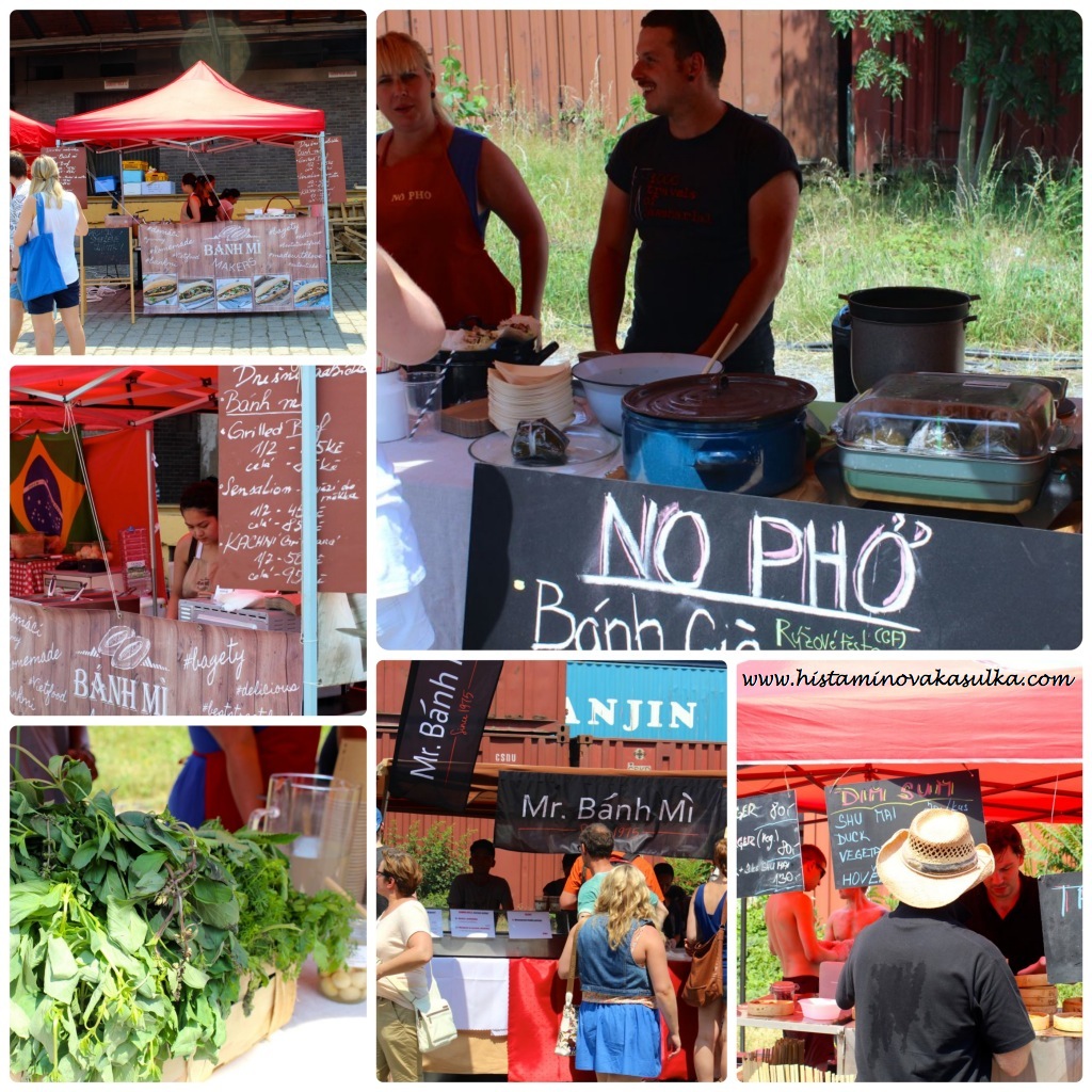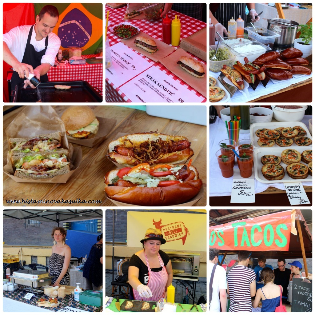 Ručičky hodin ještě nestačily dorazit k desáté hodině a teploměr nemilosrdně ukazuje 35°C. Je takové vedro, že už po prvním Pozdravu slunci je pod vámi loužička potu (bikram yoga zdarma, juhůů) a jakákoli činnost zahrnující pohyb se zdá být neuvěřitelná. Je tak vedro, že ani těsto na chléb nekyne a kytky se stěhují v květináčích po bytě za trochou stínu! Co v takový krásně letní den? Pokud vás napadlo vyvalit se u vody, tak prosím. My, foodoyeuři, se raději vypravíme na Street Food Festival. Mno jo, slyšíte správně, právě jsem se zaškatulkovala do kategorie foodoyeur, nebo-li food voyeur, což asi není potřeba vysvětlovat dále. I když vím, že většinu věcí nebudu moct vůbec ochutnat, ráda se dívám na jídlo, které je vyráběno s láskou a nadšením pro věc. To je asi nejlepší popis kuchařů a prodejců, kteří byli na této akci. Kdo jiný by byl ochotný ve 40°C stát u grilu a s láskou vyprávět příběh svého jídla? Je prostě radost vidět, že se někdo snaží vařit nejen stylově, ale také pořádně z kvalitních surovin a bez nezdravých zkratek. A že už mě znáte, tak se připravte na pořádný fotoreport:)).