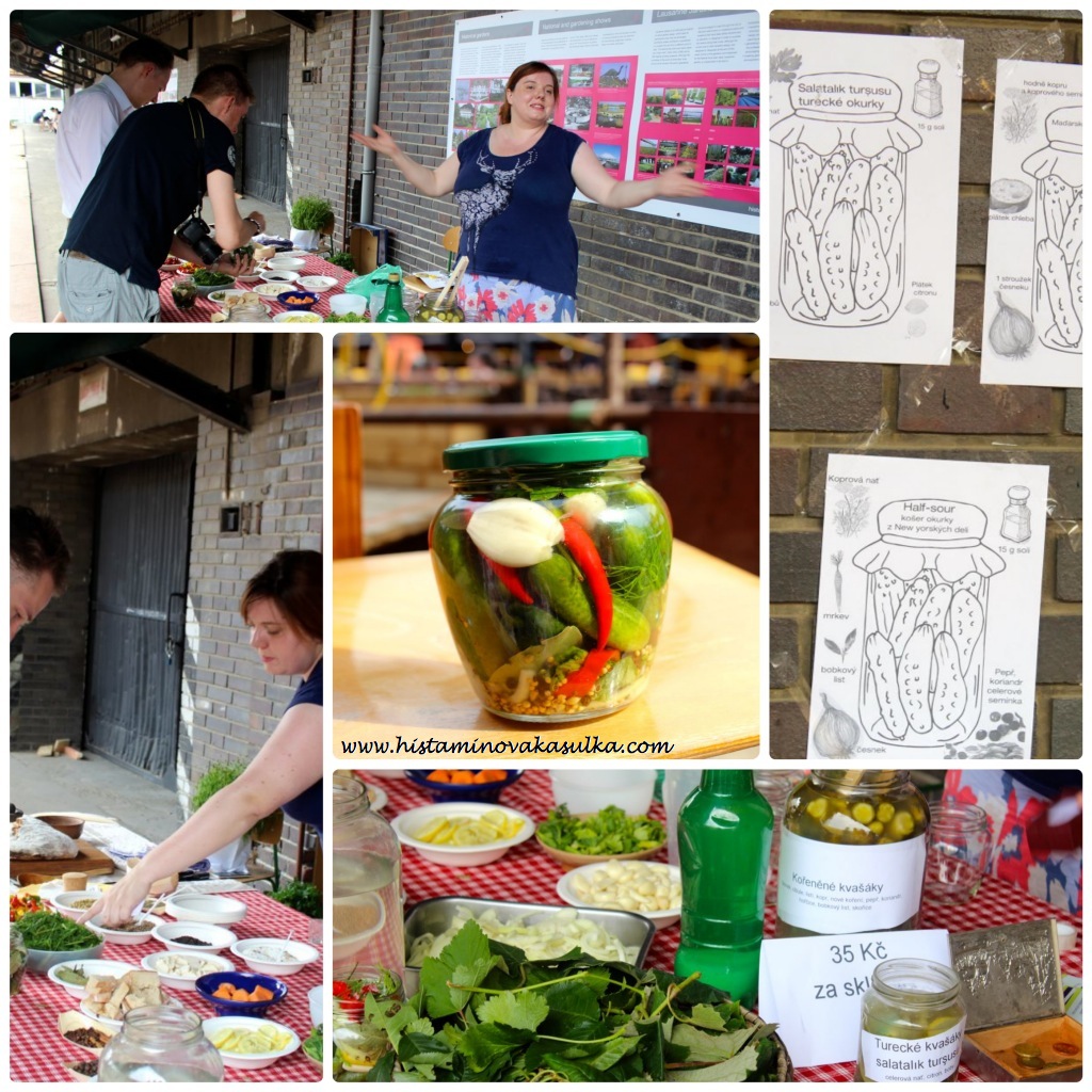 Než se vrhnu k samotnému jídlu, zastavím se první u samotných workshopů, o kterých zřejmě moc lidí dopředu ani nevědělo, takže účast byla poměrně malá. Dobře pro nás, co jsme se zrovna motali kolem. Se Zuzanou Ouhrabkovou, autorkou blogu A dá se to zkvasit?, jste si mohli pěkně připravit kvašáky, sklenička stála 35 kč a mohli jste si je namíchat podle svého vkusu. Nebudeme si lhát, přišlo mi to zrovna jako velmi dobrý dárek, prostě ručně vyráběný a také zdravý (zdravým lidem rozhodně doporučuji jíst domácí kvašené produkty pro udržení střevní), takže jsem zvědavá, jestli se setká s úspěchem (spousta česneku a čili papriček přece musí zajistit úspěch:)).