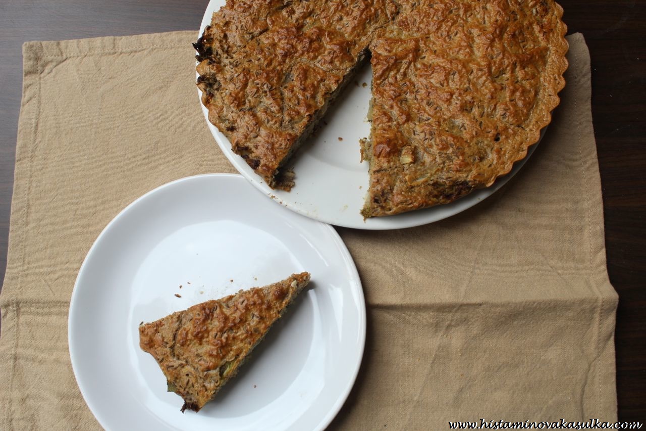 Slané koláče mám moc ráda i pro jejich široké využití. Můžete si je dát na snídani místo chleba, k svačině nebo třeba teplý k obědu s pořádnou porcí salátu. A vždy do něj můžete nacpat nějakou tu zeleninu, která vám zvedne výživovou hodnotu celého jídla. A přestože mám moc ráda quiche, někdy se mi opravdu nechce patlat s těstem, čekat než se odleží, vztekat se, když se trhá, předpékat a kdoví co ještě. Takže bych tento koláč nazvala takovou línou variantou. Jasně, že chuť bude jiná (kus másla už se na chuti pozná), ale jako chutná náhrada jistě poslouží.