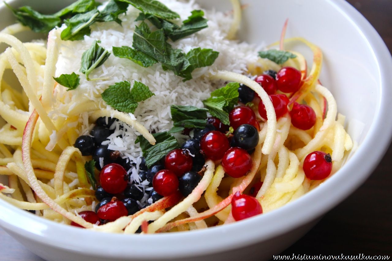 Ano ano, přišlo to. Baví mě spiralizér. Přestože jsem po něm pokukovala už přes rok, nakonec se našla příležitost, kdy jsem si jej zasloužila a mohla obohatit naši společnost kuchyňských spotřebičů. Určitě nového člena s radostí uvítaly. Tedy ne že by to nějak ulevilo ostatním spotřebičům, ale rozhodně to šetří můj čas a sporák:))). Řeč je o spiralizéru, česky někdy přezdívanému jako špagetovači, který naštěstí umí víc než udělat špagety ze zeleniny. Má více nástavců a krom tedy špaget dvou velikostí připraví také plátky a spirálky, což je fajn:). A k čemu to tedy je? Uděláte „špagety“ z jakékoli surové zeleniny (a ovoce), do kterých pak vmícháte „omáčku“ a máte hotovo. Je to zdravé, čerstvé, nápadité, prostě vás to bude bavit. To fakt chceš! Někdo by řekl, že je to zbytečný krám do bytu, ale nebudeme si lhát – jíme také očima a tyhle barevné špagety baví každého pokusného králíka. Samozřejmě top jsou cuketové, ale oceníte třeba řepné, jablečné, mrkvové…a kdo by nerad syrové, může je v této podobě podusit/osmahnout/zapéct a má super přílohu. Zvláště, pokud majít lidé pocit, že se jídlo stále opakuje. Za mě palec nahoru.