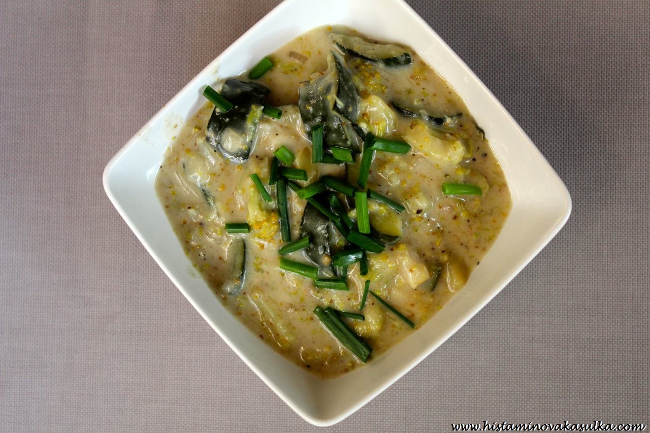 Samozřejmě tam máme spoustu protizánětlivých a protirakovinných látek, které najdeme v cuketě, brokolici, česneku, cibuli i kokosu. Záleží jen na vás, jak jídlo doladíte – pro přidání proteinu můžete zvolit fazole (které mají mimo jiné protialergické účinky) či třeba vajíčko (vitamín D!). Pokud bychom si uvařené množství rozdělili na 6 částí (já sním ideálně dvě porce najednou bez zbytečné přílohy, třeba s vařenou cizrnou), přijmeme (podle cronometeru) v jedné porci cca 220 kalorií, 6 g proteinu, 21 g sacharidů, 15 g tuku a 5 g vlákniny (přihoďte 1/2 hrnku uvařené černé fazole a máte o 8 gramů proteinu a 7,5 g vlákniny navíc, přidejte přílohu a půjdou nahoru kalorie). V jedné porci do sebe dostanete 15% B1, 20% B2, 12% B3, 15% B5, 36% B6, 23% folátu, 33% A, 133% C, 100% K, 7% vápníku, 30% mědi, 10% železa, 18% hořčíku a 14% zinku (bez těch fazolí teda). No, takže kdo si chce přidat?