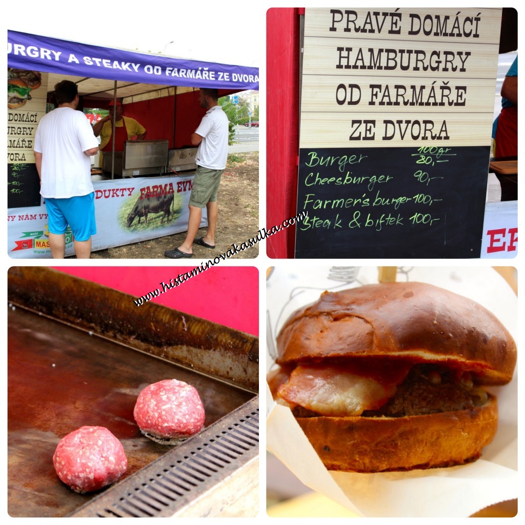 Můj doprovod (v podobě milovníka hamburgerů) neodolal tentokrát farmářskému burgeru. Byl to totiž burger z masa přímo od chovatele, který si chová vlastní skot na vlastní steaky. A moc pěkné bylo vyslechnout si u tohoto stánku, že takto by to u nich fungovat nemohlo – jen tak si v neděli sedět a baštit a prostě lelkovat. Burger sice nevypadal jako soutěžní, ale prý to byl nejlepší kousek, který můj doprovod za poslední dobu jedl. Jo, hold ta kvalita se vyplatí.