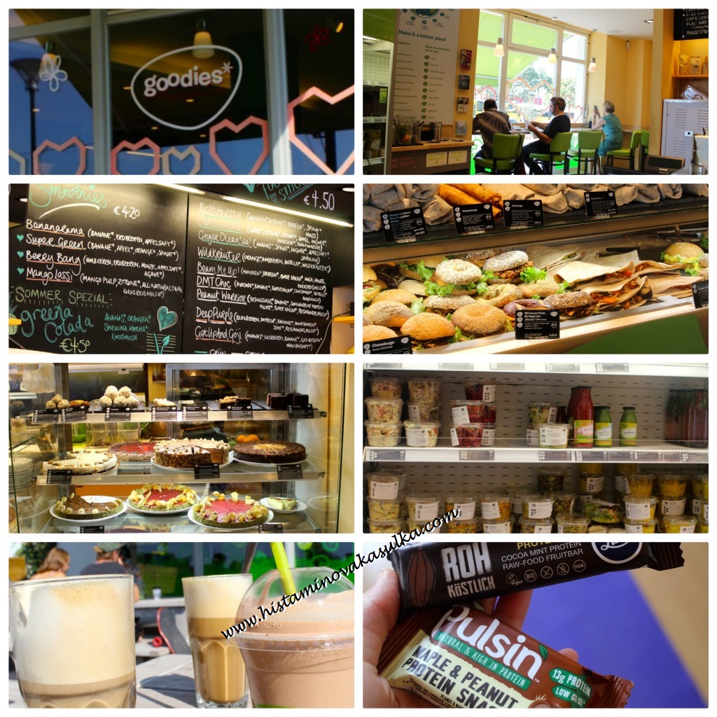 Tak to bychom měli jeden brunch hotový a pojďme se podívat na mé další oblíbené. Goodies je síť kaváren, kde si můžete přikoupit nějaké vegan a bezlepkové dortíky (v ceně do kávy sójové či vanilkové sójové mléko, za příplatek mandlové či rýžové). Ale můj oblíbený se stal na Warschauer Str. 33, kde sídlí společně s obchůdkem Veganz, kde nakoupíte spoustu vegan, raw, bezlepkových atd. potravin. Nad Goodies je pak otevřena restaurace The Bowl, kde vás čeká tzv. clean-eating, tedy zdravé čisté jídlo z kvalitních rostlinných surovin. Vše nejen bez lepku, ale také bez přidaného cukru. Ale zpátky ke Goodies, mají skvělou kávu, ale hlavně skvělé zelené smoothie, které prostě člověk na protizánětlivé vysokonutriční dietě potřebuje:). Sendviče bohužel bezlepkové nejsou, ale mají i koláčky a třeba chia puding a saláty. A kdyby vás to neuspokojilo, pár kroků je DMko, kde můžete nakoupit neuvěřitelnou škálu zdravých a gluten-free potravin včetně celé řádky superpotravin.