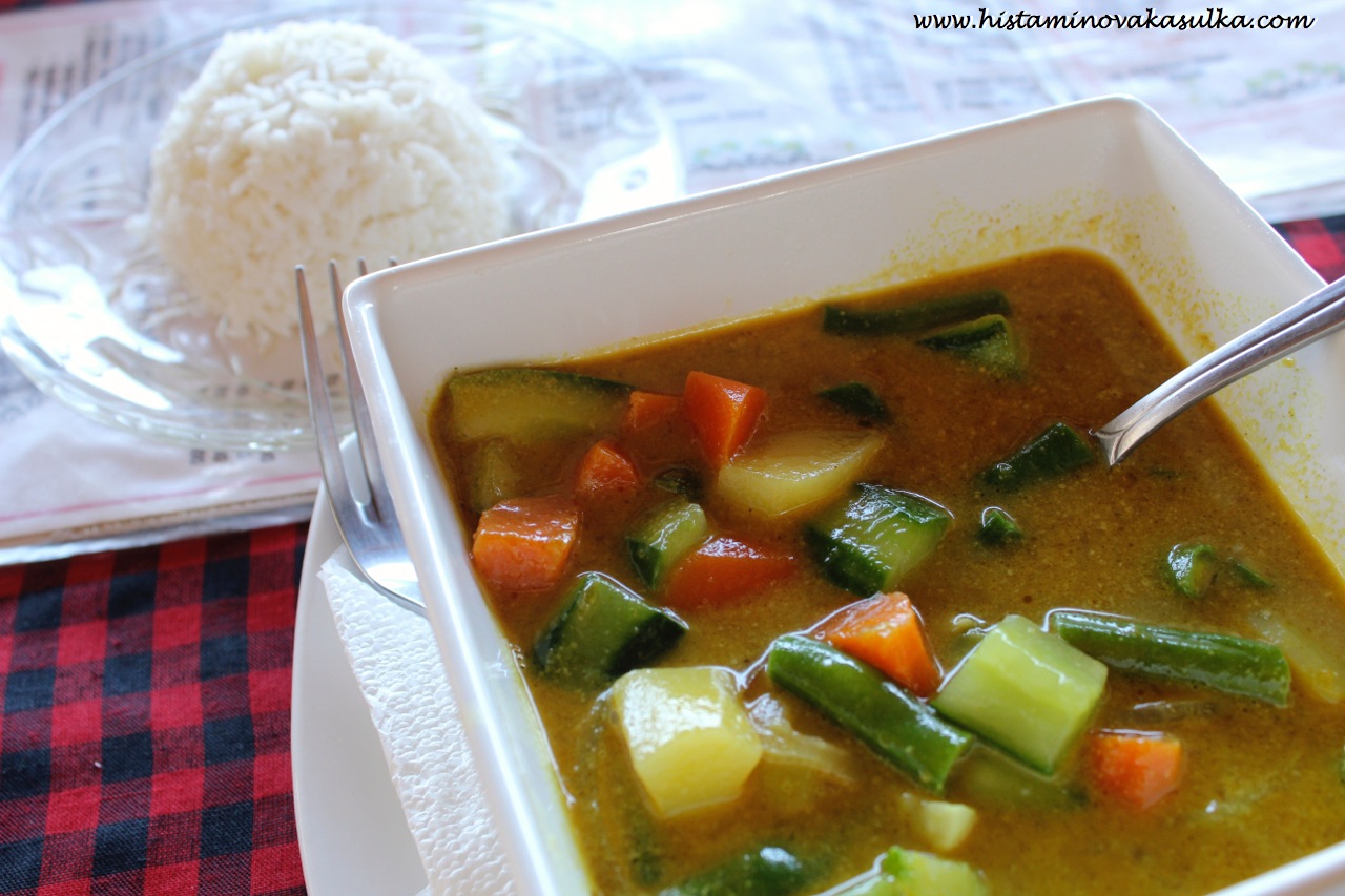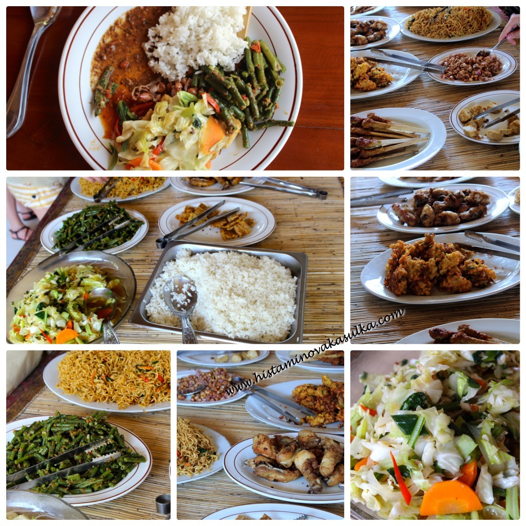 Pokud budete plánovat různé výlety, tak se určitě poptejte, co vše je v ceně. Třeba náš výlet na kolech rýžovými políčky (výlet na kolech znamenal, že jsem všehošudy 3x šlápla do pedálů) začal na kávové plantážičce s ochutnávkou kávy a byl ukončen tradičním obědem v sídle firmy. Výhoda je to, že se člověk může přímo zeptat, v čem je mouka (a že díky průvodcům tam někdo mluví anglicky). K mému zklamání jsem nemohla kukuřičné placičky, nudle a tempeh. Ale to vůbec nevadí, protože zeleninová jídla a jejch karí jsou prostě moc fajn. Věřím, že i kvalita masa by mohla být vyšší a tedy bezpečná pro histaminiky, ale já jsem se rozhodla to raději neriskovat. Pokud jste alergičtí na sóju, tak už je to krapet těžší, protože pokud v něčem není maso, je tam obvykle tofu nebo tempeh (pokud nejste alergičtí, pak doporučuji alespoň malý kousek jejich smaženého tempehu zkusit, obvykle se k mouce ani nepřiblíží).