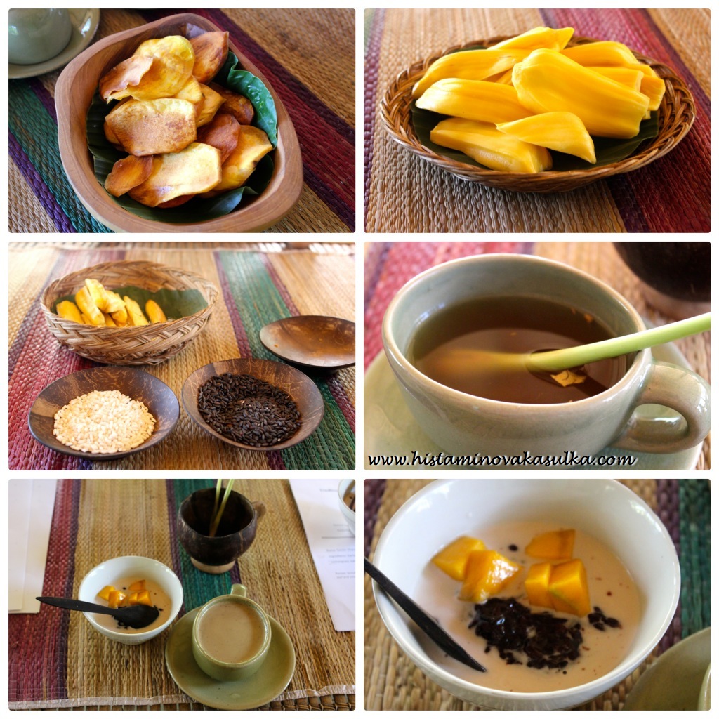 Ke správnému jídlu patří také dezert, takže jsme se pustili do přípravy onoho tradičního „pudingu“ z černé rýže. Určitě se na přípravu „bubur injin“ chystám i v ČR, jen musím sehnat pandánové listy či esenci a vyrobit si kokosový krém:). K tomuto dezertu se výtečně hodí kousek čerstvého manga. Pokud budete mít možnost, doporučuji vyzkoušet čertvý chlebovník či osmaženou kasavu (tapioka). K bramborovým lupínkům už se nebudete chtít vracet. A když si do čerstvého zázvorového čaje dáte místo lžičky stonek citrónové trávy, dostane váš šálek čaje nový rozměr!