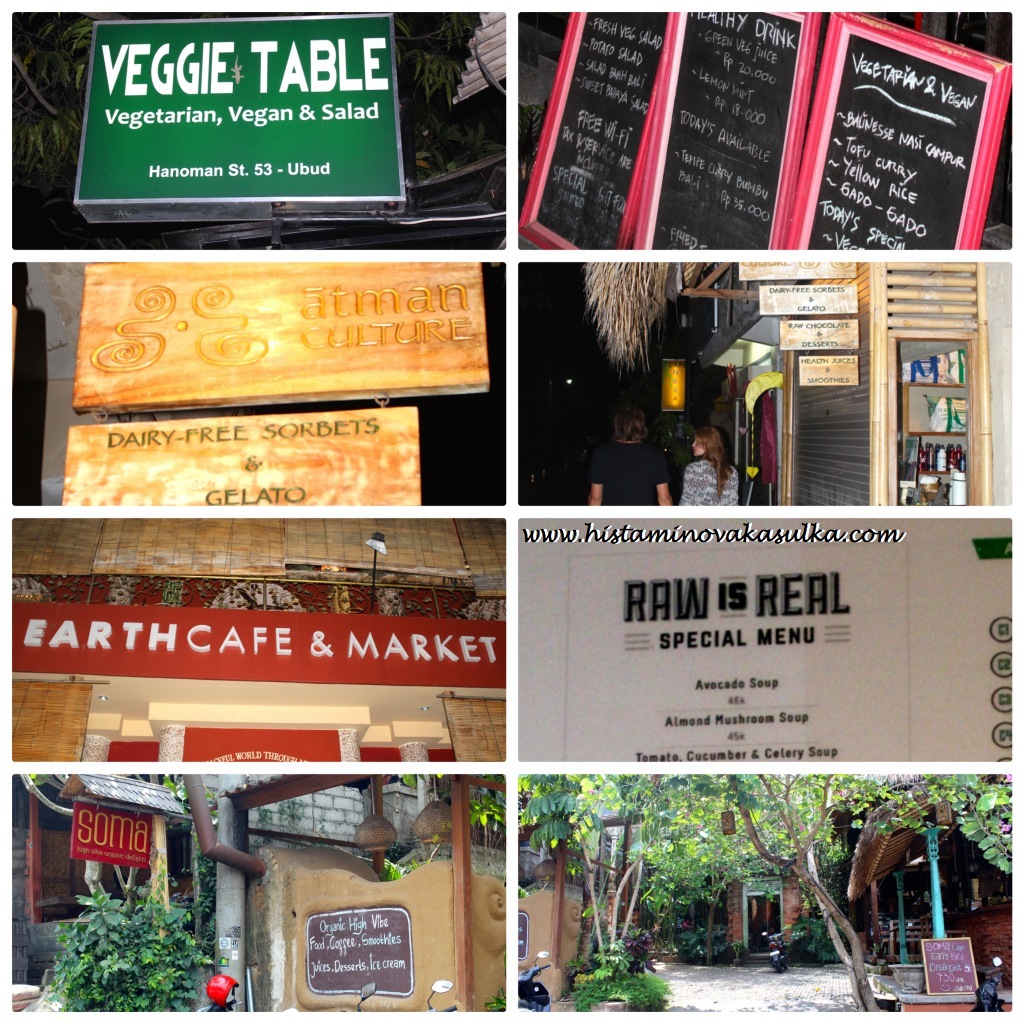 Krom této restaurace můžete raw zákusky ochutnat i na dalších místech jako je SOMA cafe nebo Earthcafe, vegetariánských míst najdete také pár. V Atman Culture vám nabídnou bezmléčnou zmrzlinu a ve Veggie Table zase klasickou balijskou večeři v stopro vege formě.