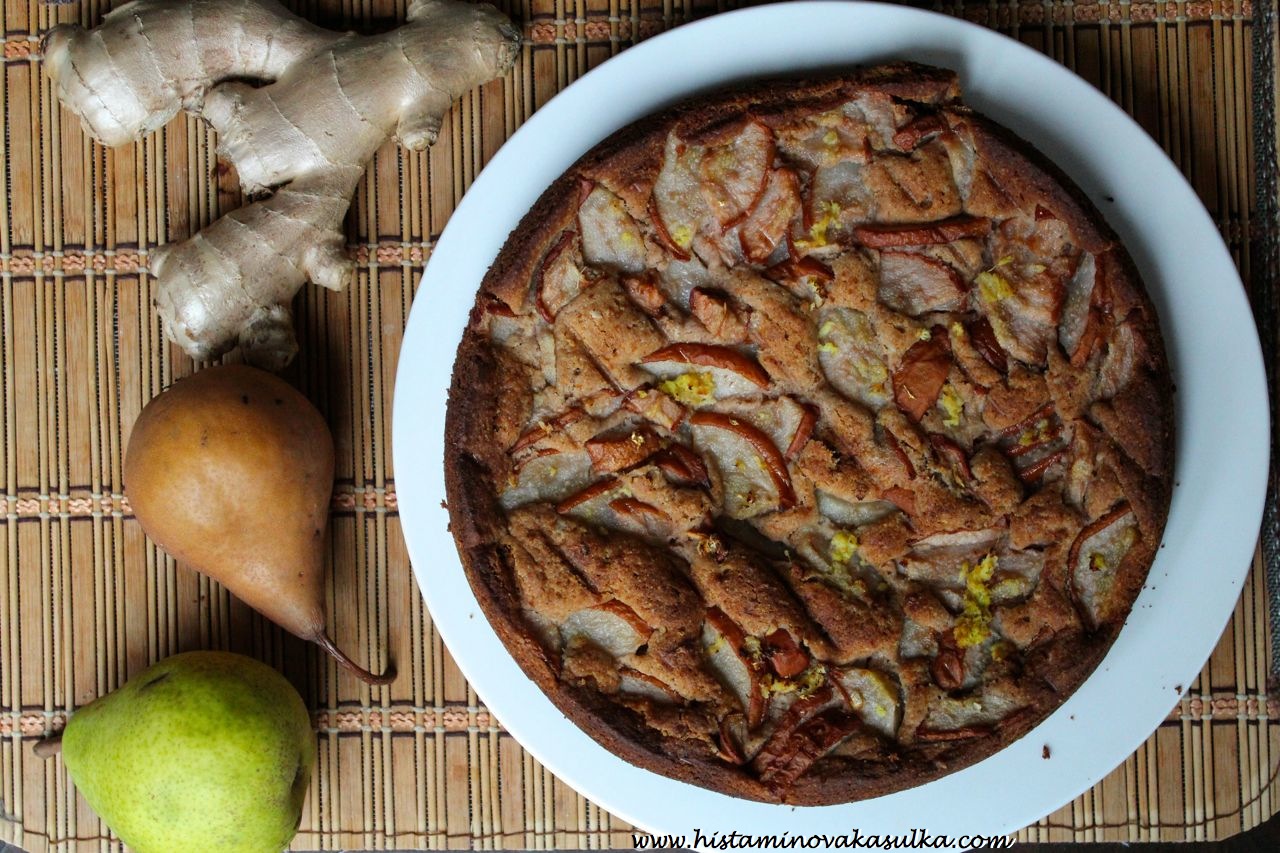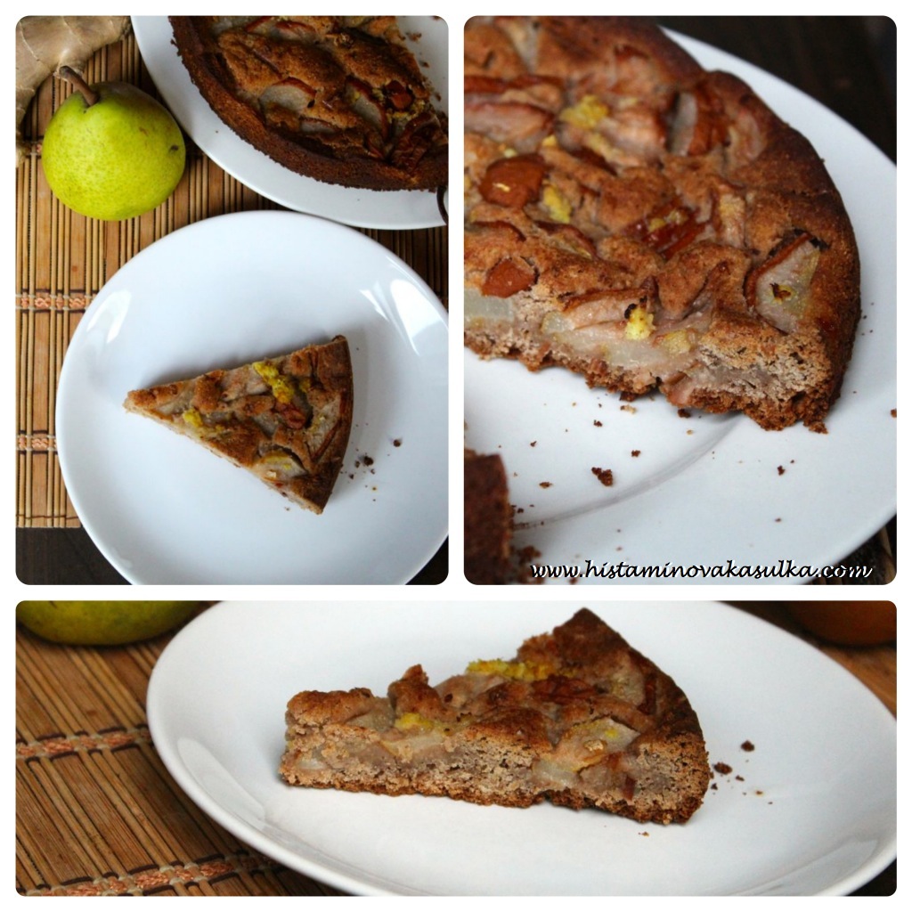 Hruškovo-zázvorový koláč bez lepku, vajec i mléka