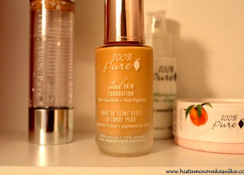Už na začátku léta se objevily v nabídce 100% Pure nové typy make-upů a protože jsem byla hrozně moc nedočkavá a nechtělo se mi čekat, až přijdou novinky do ČR, využila jsem expresní kurýrní službu (tímto zdravím svou nejdražší ženu za oceán!), super slev na 100% Pure US stránkách a brzy se těšila z nového make-upu s olivovým skvalenem a ovocnými pigmenty, který nese chytlavý název 2nd Skin (tedy druhá kůže). Druhá kůže musí přece sedět jako první kůže, tedy žádný pocit zatížení atd. Bohužel první nanesení nebyl zrovna úspěch, protože mi na čele i bradě zůstaly jakoby žmolky „suché“ odlupující se kůže, přestože si nemyslím, že by moje kůže byla nějak extra suchá. Ejhle, pátrala jsem, zda jsem třeba make-up špatně nerozmíchala, protože se musí před každým použití dobře promíchat a pak je tam takové kapátko, kterým si make-up nanesete na hřbet ruky a pak houbičkou nebo prsty vťukáte do kůže (tedy žádné vtírání, jak by správně mělo být:). Nope, ani druhý pokus nebyl úspěšnější, tak jsem si pěkně tvář odrhla peelingem (ne že bych to občas nedělala) a smíchala nový make-up s pár kapkami tónovacího hydratačního krému a ejhle, výsledek skvělý. Nová nádobka je skleněná a kapátko by mělo zabránit případnému proniknutí bakterií přes stále otevřenou pumpičku, jak je tomu u běžných make-upů (stejně tak se zabrání osychání případných zbytků na ústí pumpičky, protože kdo by to ráno ve spěchu pořád umýval, že). Nejsem si jistá, zda později kapátko dostane až naspod nádoby, ale tak vždy se to dá vylít, z pumpičky zbytek dostat prostě nejde (i když systém 100% Pure je poměrně dobrý a dostanete z lahvičky maximum). Make-up nemá matný efekt a proti případnému lesku budete muset „look“ dokončit trochou pudru.