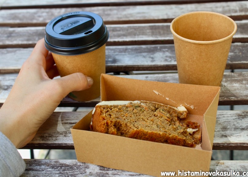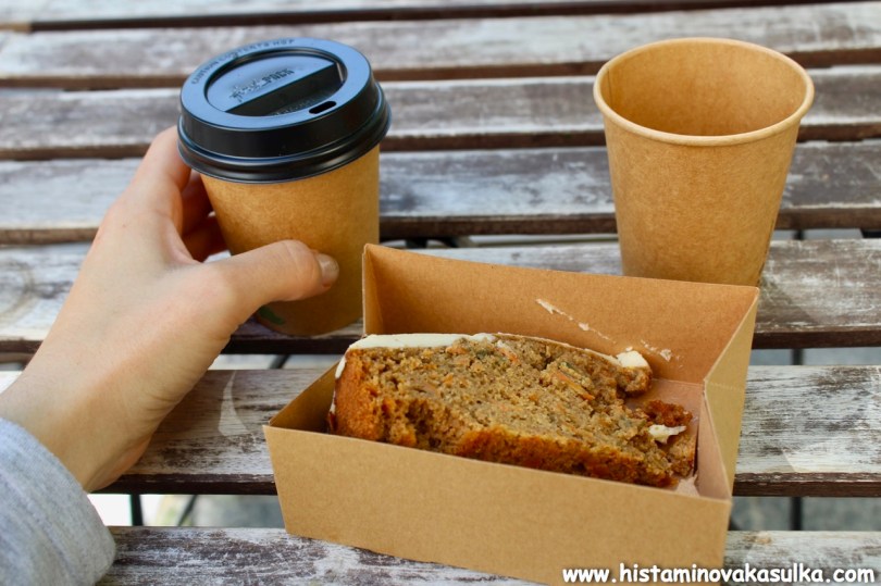 Vše je předem předbalené v ekologicky friendly krabičkách, takže není problém vzít sebou, příbory jsou dřevěné. U dezertů máte spoustu krémů, ovesnou kaši, ale i spoustu koláčů, které jsou vegan (tedy bez mléka i vajec), ale i bezlepkových. Zkoušela jsem čokoládový vegan koláč, ale byl poněkud sušší a hodně se tak drobil. Flat white každopádně na jedničku. Počítejte s tím, že salát, koláč a kafe vás přijdou na €12,30. Na všech pobočkách je samozřejmě k dispozici voda zdarma.
