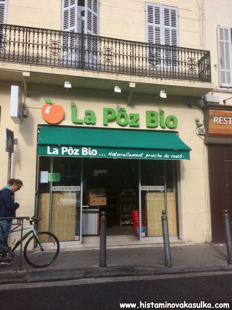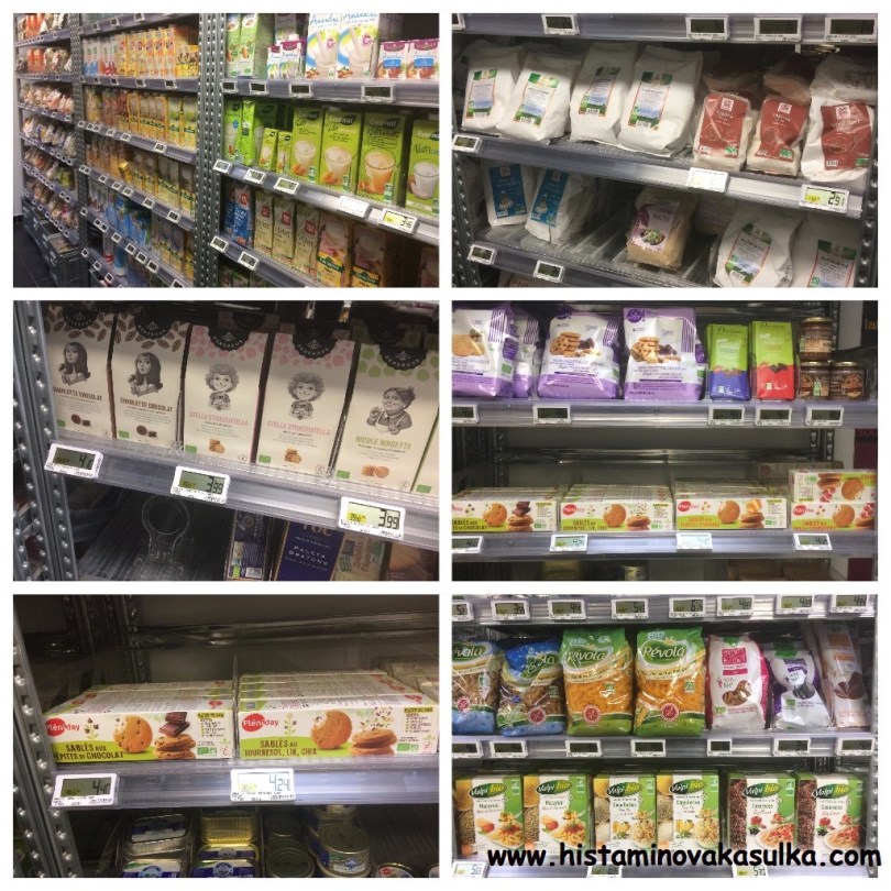 c) Biocoop (tam jsem v Marseille nebyla). Nabídka pečiva, sucharů, mouk, sušenek, koláčů byla mega velká a měli třeba i krekry, které byly bez kvasnic, a tedy ideální možností „pečiva“ pro histaminiky.