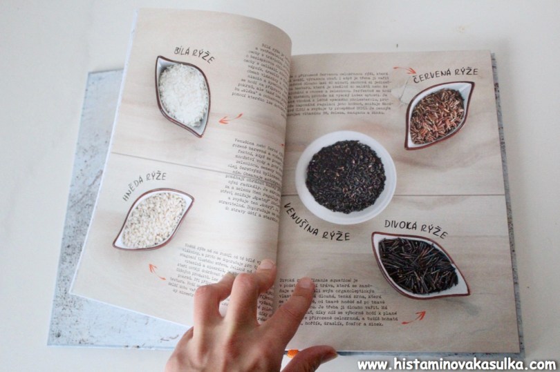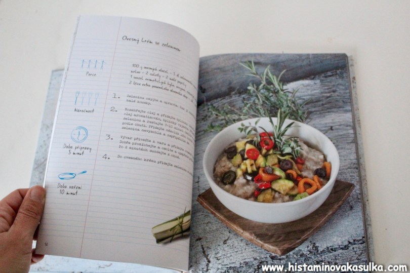 Recepty jsou hezky rozděleny podle majoritní suroviny, tedy na recepty s obilninami, s luštěninami, zeleninou a nakonec i dezert jakožto recepty s ovocem a moukou. Autorka zmiňuje, že cíl byl připravit jednoduché a rychlé recepty, což bude určitě vyhovovat spoustě lidem. Kniha není bezlepková, ale najdete v ní spoustu přirozeně bezlepkových receptů nebo receptů, kde není vůbec problém zaměnit mouku nebo obilninu za bezlepkovou. Histaminika bude asi zajímat, že recepty jsou připravovány s droždím, ale z mé zkušenosti stačí do těchto receptů přidat prášek na pečení a vše bude fungovat, protože i tak se nejedná o nějak nadýchané recepty (a ve spoustě se přidává droždí přímo před pečením a nedává se těsto kynout, tedy úplně nevidím jeho smysl). Myslím, že se také budete chtít vyhnout receptům ze sóji, ale sama autorka píše, že tyto suroviny doporučuje v omezené míře.