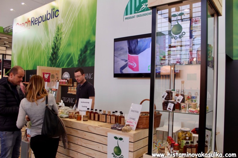 Samozřejmě by neměl u Čechů chybět ani nějaký ten alkohol, takže nás zastupovaly Vinné sklepy Kutná Hora (biodynamické vinařství). Celkově pak v rámci jedné z hal byla docela velká plocha určená bio vínům a jejich ochutnávání, ale jelikož jsem nezkoušela a ani se tam nezdržovala, tak v tomto směru nedokáži nic říct (ani co se týče vína z Kutné Hory).