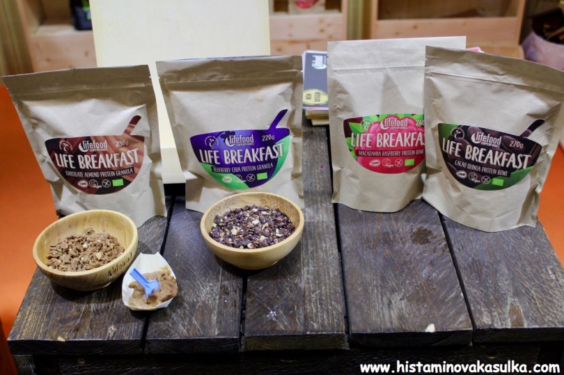 U druhého zástupce české raw produkce Lifefood jsem očekávala, s čím se letos vytasí a pokud jste příznivci této firmy, tak vás za pár týdnů čekají nové raw proteinové tyčinky – malinová a jahodová. Budou také jednodruhové rostlinné proteinové prášky, což může zaujmout nejen vegany, ale i histaminiky (dýňový, chia, slunečnicový a konopný). A také připravili nové raw snídaňové směsi. Hold je potřeba jít stále kupředu.