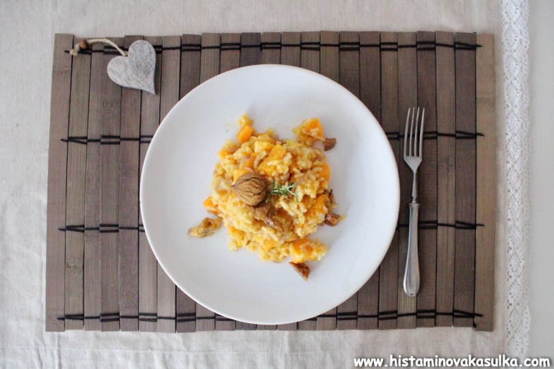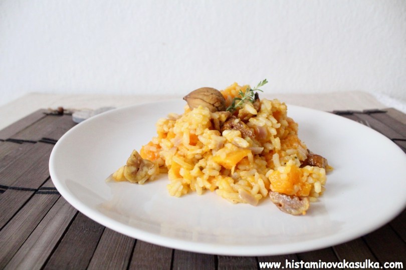 Risotto s máslovou dýní, kaštany a rozmarýnem