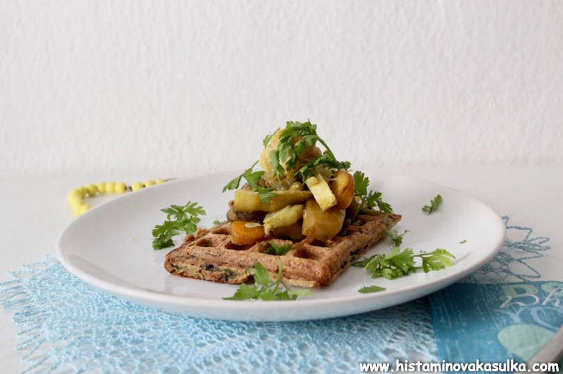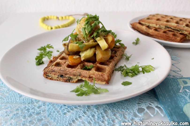 Cuketové vafle s koriandrem a perillou (a pečenou zeleninou)