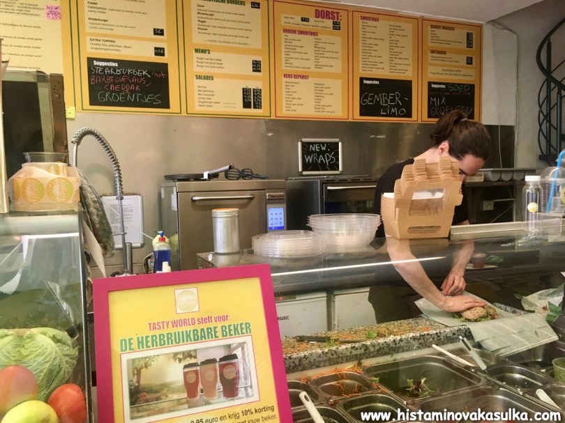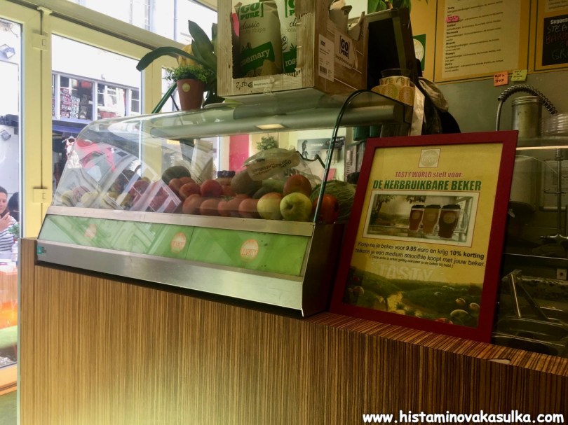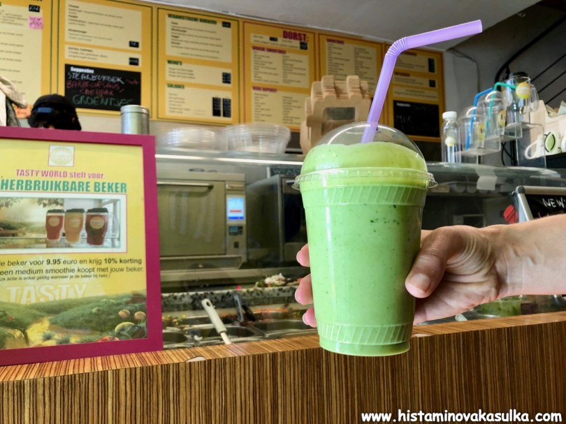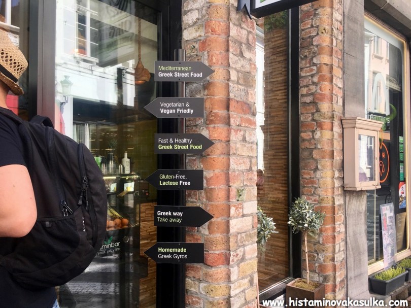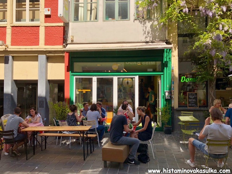 V Gentu už jsem toho moc nepojedla, co se bezlepkového jídla týče, ale pokud stejně jako já budete mít po několika dnech už absťák po zelenině a případně smoothie, zkuste Tasty world, což je juice a veggieburger bar. Takže vlastně pokud budete chtít vegetariánský burger, tak můžete také vyzkoušet, ale netuším, jak je to s bezlepkovou variantou. Každopádně když jsem jim koukala pod ruce, vnitřek byl pěkně bohatý na zeleninu, a tak bych se nebála malé porce. Já jsem volila raději smoothie, abych trochu stabilizovala žírné buňky, brala jsem jedno založené na kokosu a avokádu (pro pokročilé histaminiky) a můžu říct, že to byl úplně jiný rozměr ve srovnání se zkušeností tady v Česku. Bylo tam dost surovin, chutě byly hodně výrazné, nic nebylo ošizené. Takže pokud budete mít cestu kolem a už nebudete chtít hranolky ani vidět, tak sem zavítejte.