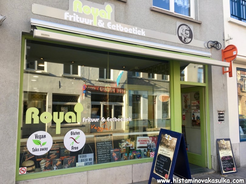 Royal Frituur & eetboetiek se nachází také v Bruggách a ze mne velké ne. Opět se honosí tím, že mají nejen bezlepkové hranolky, ale hlavně že jsou vegan (tedy v oleji namísto dvojitého přesmažení v sádle, což je typicky pro ty pravé belgické). V nabídce mají také další vegan pochutiny, ale nic jsme nezkoušeli. Za sebe mohu říct, že tyto hranolky byly asi nejhorší, co jsme měli, bistro smrdělo přepáleným olejem a musela jsem z něj odejít, abych nehodila menší šavličku (ale já jsem na tohle prostě citlivka). Domácí majonéza nic moc, hranolky také žádná sláva. Takže pokud hledáte veganské místo, tak tady se najíte, ale ty nejlepší hranolky bych zde nečekala.