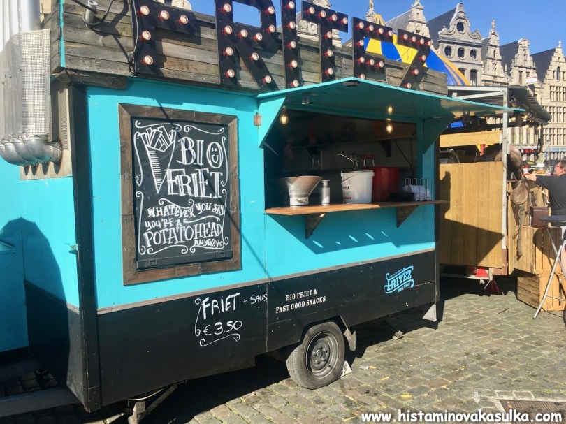 The Olive streetfood najdete v Bruggách a určitě na něj lehce narazíte, protože je co by kamenem dohodil od hlavních památek a turistických míst. Zaujme vás asi tím, že se jedná sice o street food, ale v bio kvalitě. Krom hranolek mají i pár dalších pochutin, rozumí pojmu gluten-free bez mrknutí oka a celkově dostanete své jídlo velmi rychle. Tedy hranolky, to ostatní jsme nezkoušeli.