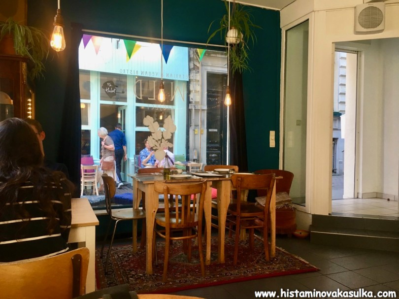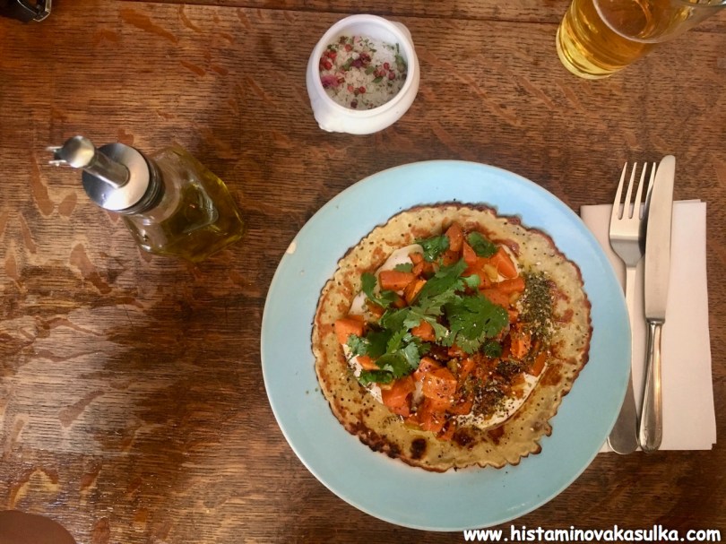 Název Wild sám o sobě už napovídá, v jakém duchu se restaurace nese. Je to malinké místo o pár stolečcích, kde si potrpí na eko (takže kdybyste chtěli mističky sebou, musíte si je přinést). Navíc je to restaurace, kde je všechno plant-based s nádechem středozemní kuchyně, takže se najíte i v případě, že máte alergie na mléčné nebo vejce. Bohužel bezlepkový výběr je trochu omezený, zvláště pokud se ještě musíte vyhýbat rajčatům a lilku. Zůstalo tedy jen pár možností, ale jelikož se menu mění pravidelně, takže těžko říct, na co zrovna narazíte vy. Já jsem měla možnost ochutnat palačinku z cizrnové mouky s batáty a zeleninou a musím říct, že byla fakt super. Jen to množství, které vyšlo na více jak €11, mě prostě tak nějak úplně nezapláclo, zvláště po docela hladovém dni. Ale chápu, prostě bylo asi vyhodnoceno, že potřebuji nějakou dietku. V bistru mají také bio pivo (kdo by se chtěl ptát, i bio pivo pořád obsahuje histamin a lepek), pokud tomuto nápoji holdujete, ale jinak dostanete vodu či si můžete vybrat nějakou limču.