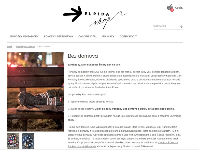 Dnes bych začala jedním netradičním dárkem, který jsem letos dostala k svátku. Podle mě je to hezký dárek i k Vánocům. Vím, že spousta lidí si řekne, že dávat něčím jménem na charitu nebo jiné záslužné projekty není vlastně ok, protože nevíte, zda by to druhému udělalo radost, ale vážně je lepší kupovat už 155. hrneček a sladkosti a tvářit se, jak je ten Ježíšek boží? Já si to úplně nemyslím a vím, že tam venku je spousta projektů, které lze podpořit, ale tenhle byl zrovna aktuální. Jak to probíhá? Přes organizaci Elpida, která se dlouhodobě zaměřuje na pomoc seniorům, si můžete koupit ponožky, které uplete nějaká babička a dostane za to svou odměnu. A místo toho, abyste někomu dali další chundelaté ponožky, tak letos je Elpida v rámci akce Ponožky bez domova dá Armádě spásy, která je předá přímo potřebnému člověku bez domova, kterému třeba letos zachrání nohy před omrzlinami. Tak neváhejte. A pokud se vám zrovna tento projekt nelíbí, najděte si třeba nějaký jiný.
