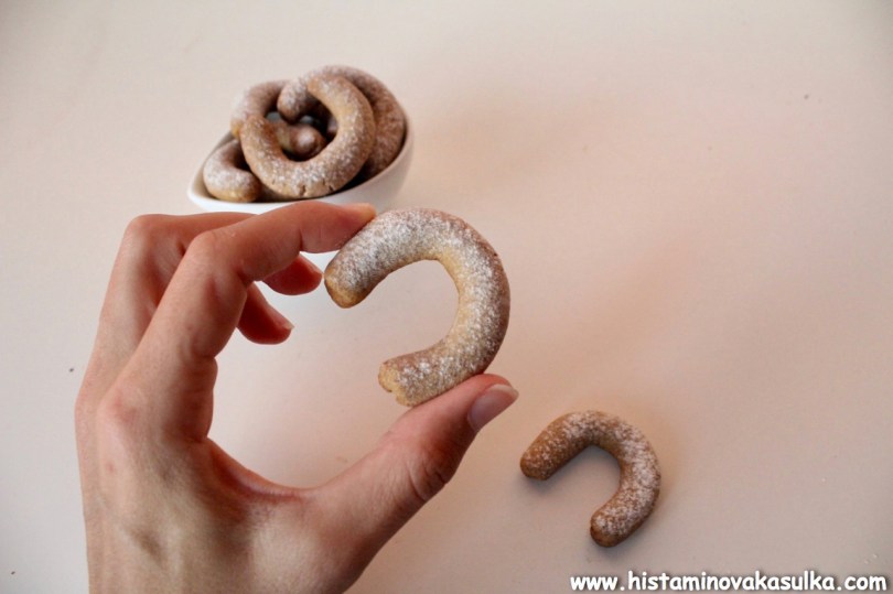 Jako správné rohlíčky jsou hezky křehké. Když nebudou dokonalé, nic se neděje, cukroví přece není na výzdobu, ale k snědku. Nebo na provonění domova. A vašemu žaludku bude docela fuk, jak moc je rohlíček přesný. Hlavně, abyste si jej užili v klidu, s radostí z nové chuti a každého dne, kdy můžete takovou dobrotu jíst, když spousta lidí nemá ani pořádně co jíst.