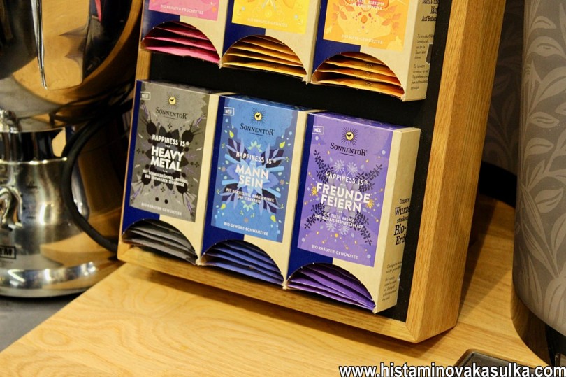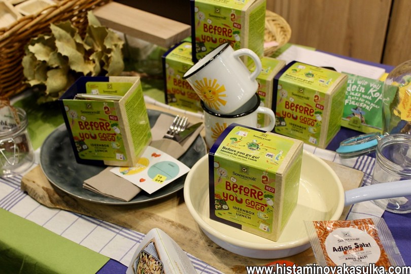 Loni jsem špatně zařadila firmu Sonnentor, ale její skalní fanoušci ví, že je česká. V Čejkovicích nejen pěstují své bylinky, ale pořádají občas akce (letos se můžete těšit třeba na předvelikonoční jarmark, sluneční máj, sluneční bylinkobraní, bylinkové slavnosti atd). Loni jsem totiž nenarazila na nikoho, kdo by mluvil česky, letos už ano. Každopádně jejich stánek je vždy krásný, letos i s baristou, který tam kouzlil jedno mléčné srdce za druhým. Jako novinky mají sady Wake me up a Before you go go, což jsou sady koření, čajů a k tomu recepty, prostě balíček na celý týden, který vám dodá inspiraci nejen na snídaně. Pro mě byla rozhodně novinka i sirupy, tedy kurkumový s citrónem a chai. Určitě přibyly i čaje, ale mají jich tolik, že si je nepamatuji. Já je totiž ráda snad všechny, baví mě jejich grafická stránka, kombinace a samozřejmě kvalita.