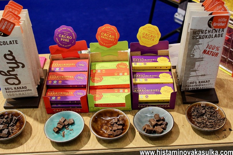 Hodně zde letos bylo arašídové máslo v různých kombinacích a veganské čokoládové i nečokoládové pomazánky, které ocení také alergici na mléčné produkty. Tentokrát jsem neobjevila žádnou novou special příchuť raw tyčinek nebo čokolády.