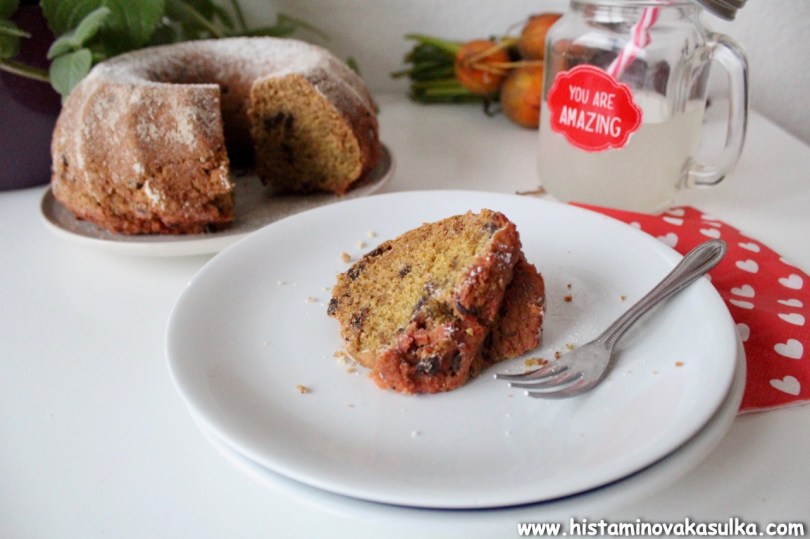 Tentokrát jsem využila směs, která na pečení bábovky není vůbec určená, ale když ona mi tak smutně ležela doma a koukala na mě a prosila mě, abych ji nenechala zkazit. Tak jsem se tedy poškrábala na hlavně a řekla si, že právě díky samokypřícím vlastnostem, které jsem ještě podpořila, by mohla fungovat i bez vajec a mléka. A ono taky jo, opakovaně měla úspěch nejen u dětí. Pokud zvolíte i jiné sladidlo (ať už třeba datlovou pastu nebo javorový sirup, pohostíte i své kamarády vegany).